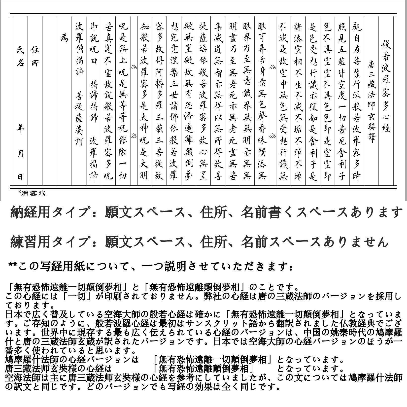 般若心経+筆ペン 写経用紙セット 写経練習納経 20枚入。