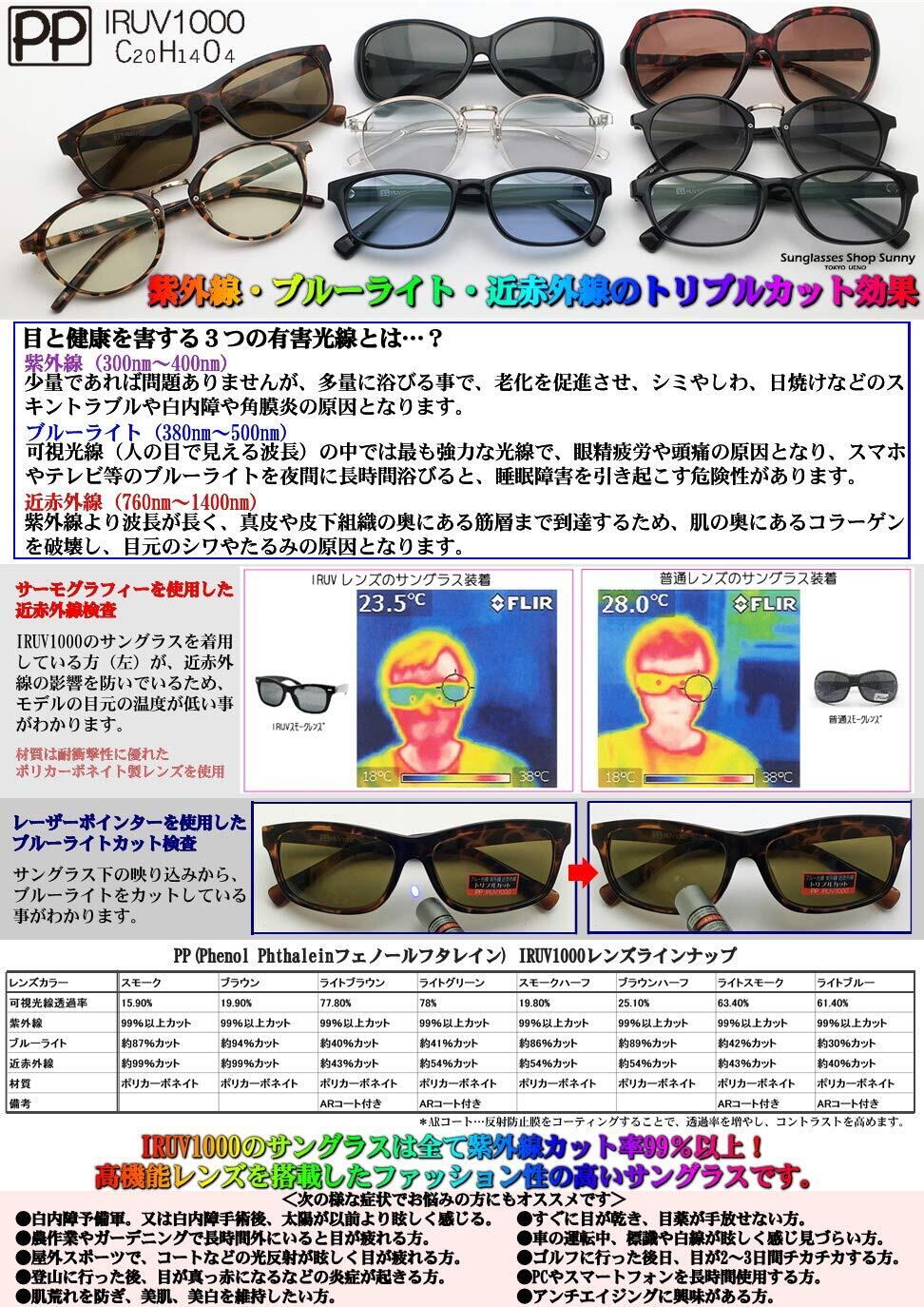PP(Phenol Phthalein) IRUV1000 ボストン サングラス メンズ レディース 男女兼用 ブルーライトカット 近赤外線カット 紫外線カット カラーレンズ 白内障予防 鯖江レンズ AG-011