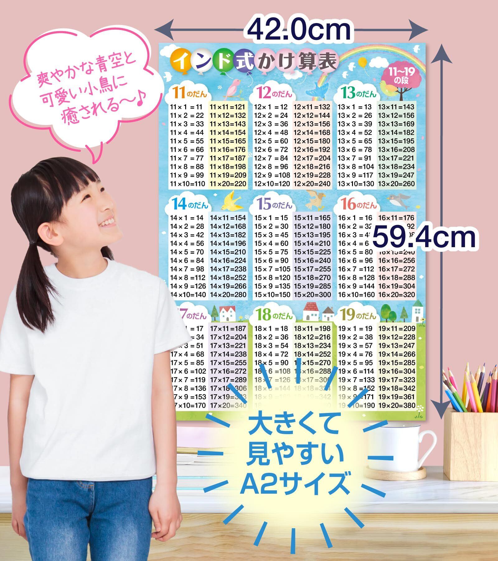 お風呂の学校 インド式かけ算表 11〜19の段 お風呂ポスター 日本製(青空デザイン) 算数 知育 学習 九九表 A2サイズ