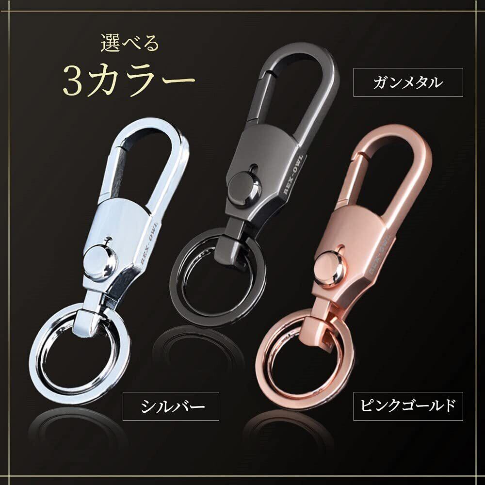 [REX-OWL] キーホルダー メンズ 取り外し可能 キーリング ダブルリング カラビナ RKH-01 (ガンメタル)