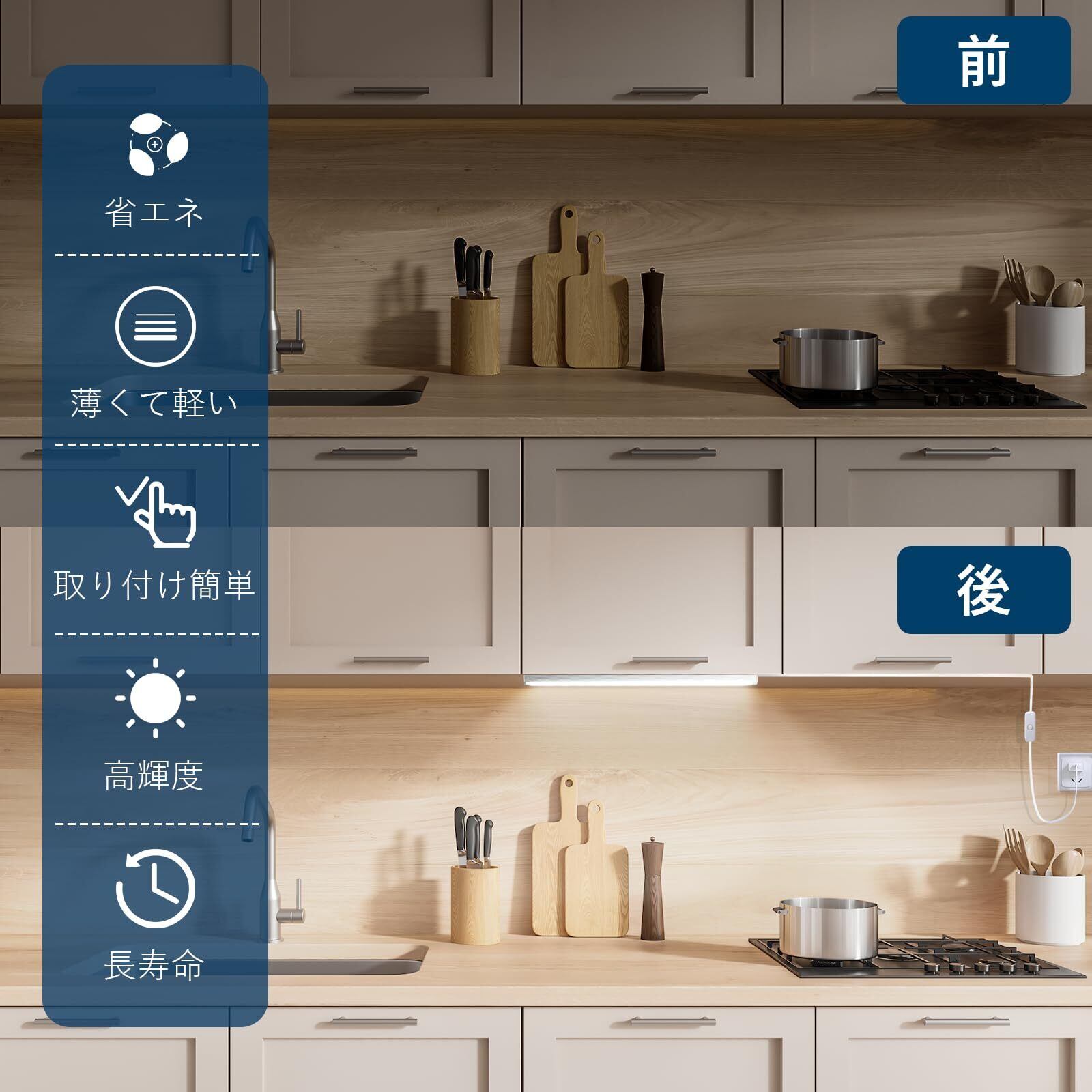 LED バーライト キッチンライト 超高輝度 30cm キャビネット下ライト マグネット式 AC電源 防災 省エネ 高感度 長寿命 寝室 廊下 階段 ワードローブ 学生寮 (6000K/昼光色)