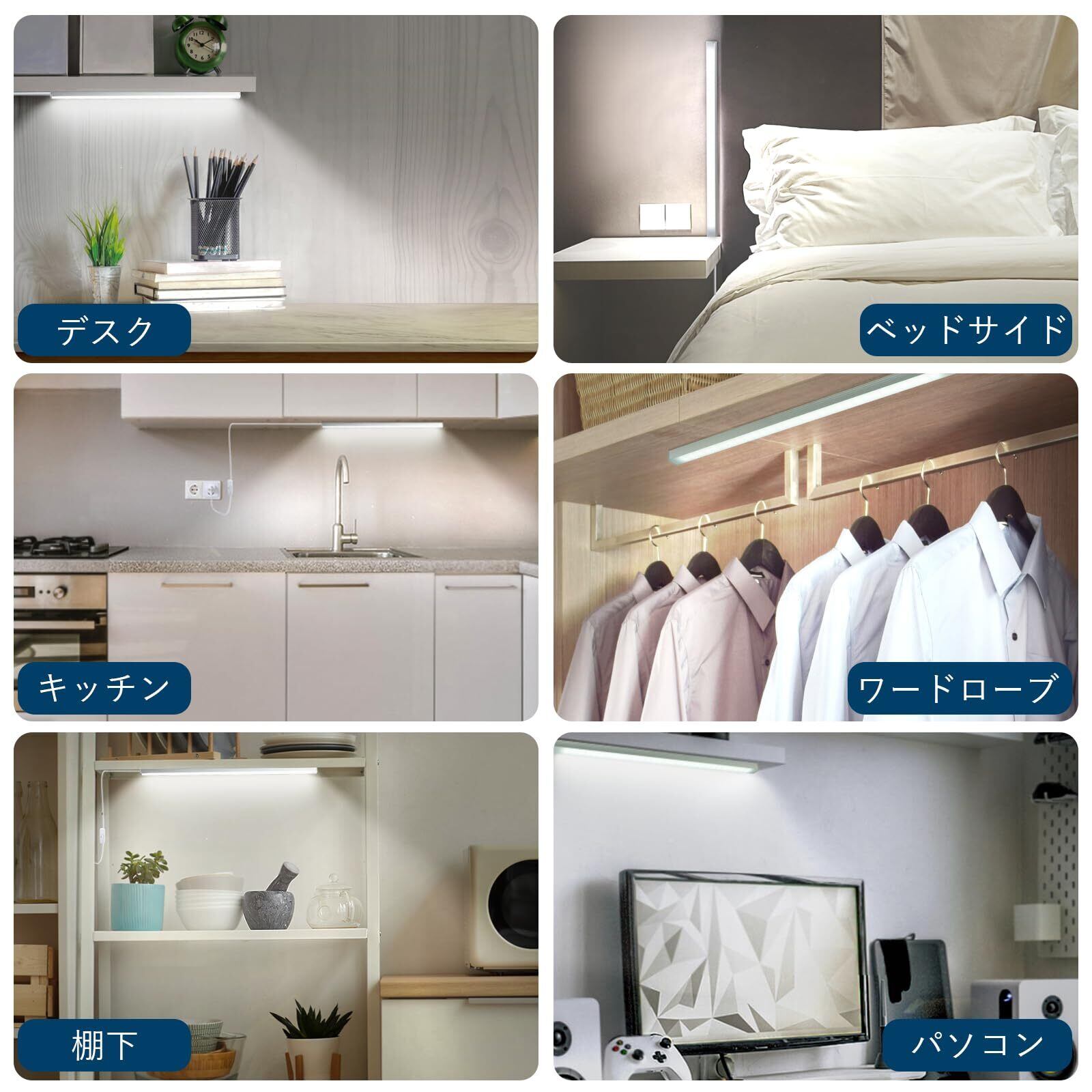 【取り付け簡単】LEDキャビネットライトは両面テープが付属しており、電気技師は不要で、壁や棚などの場所に貼り付けるだけですぐに使用できます。裏側に磁石があり、アイロン面にしっかりと貼り付けることができ、取り付けは数秒しかかかりません。