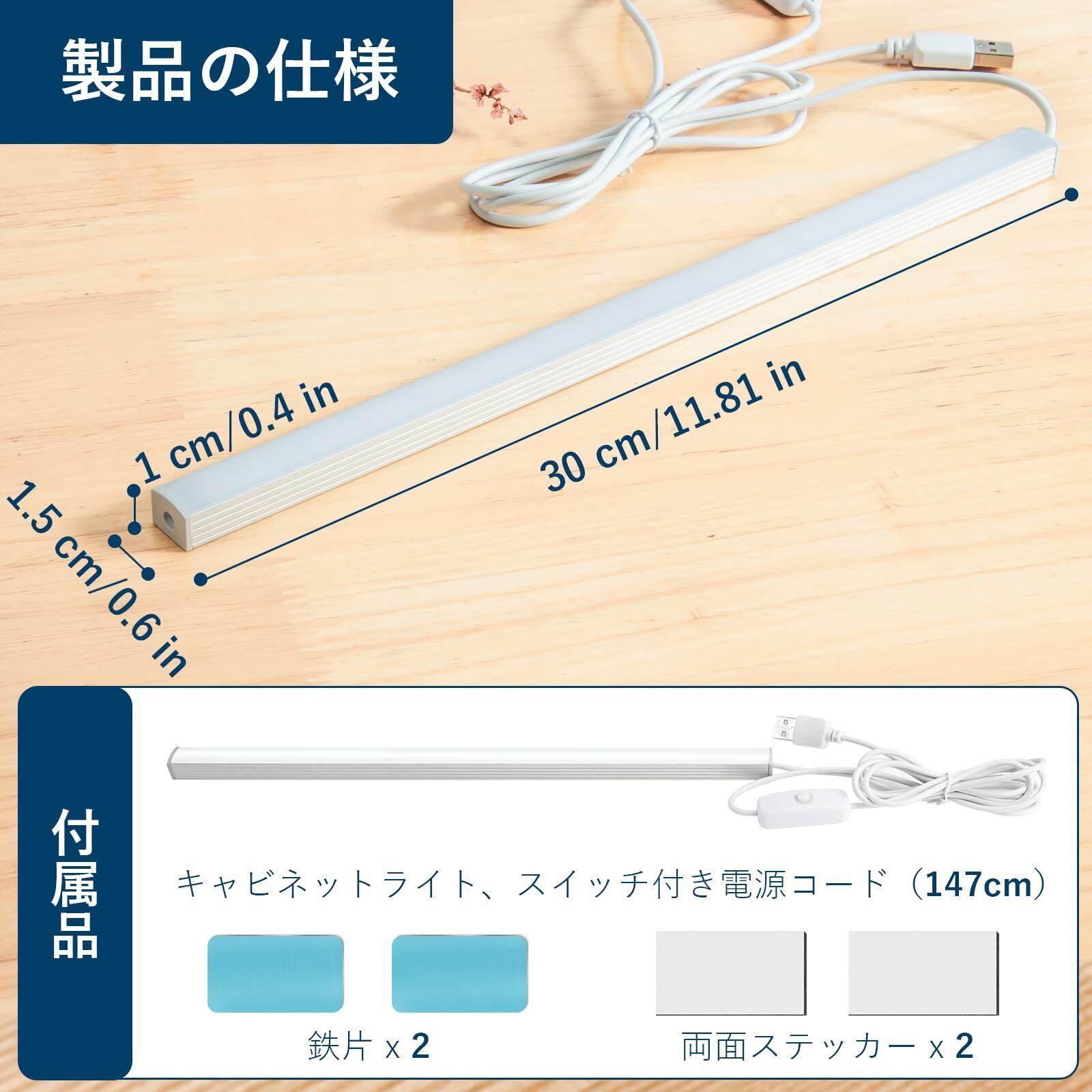 LED バーライト キッチンランプ USBライト LED蛍光灯 無段階調光 30CM USB 5V 給電 マグネット キッチン 照明高感度 長寿命 寝室 廊下 階段 ワードローブ 学生寮AEIFRIYU (6000K/昼光色)