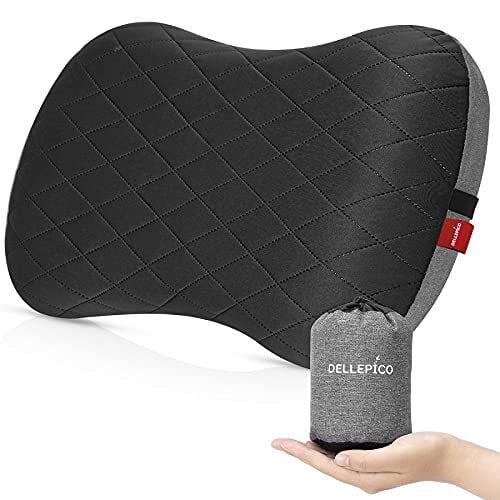 DELLEPICO キャンプ 枕 アップグレード版 カバー付き キャンプ アウトドア 車中泊 まくら ピロー エアー枕 携帯枕 旅行枕 キャンプまくら キャンプ枕 超軽量 コンパクト 収納袋付き(ブラック)