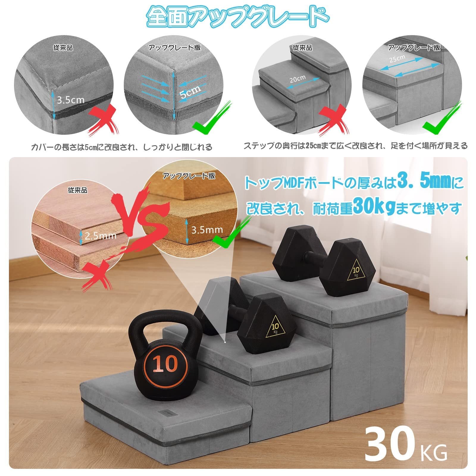 【特価セール】ドッグステップ 3段 犬 ペット用階段 踏み台 収納型ペットステップ 耐荷重20KG 足腰への負担を軽減 怪我防止 安全 小型犬 ヘルニア 高齢犬 シニア犬 収納ボックス 組立ペットステップ 介護用品 | わくわくSHOP