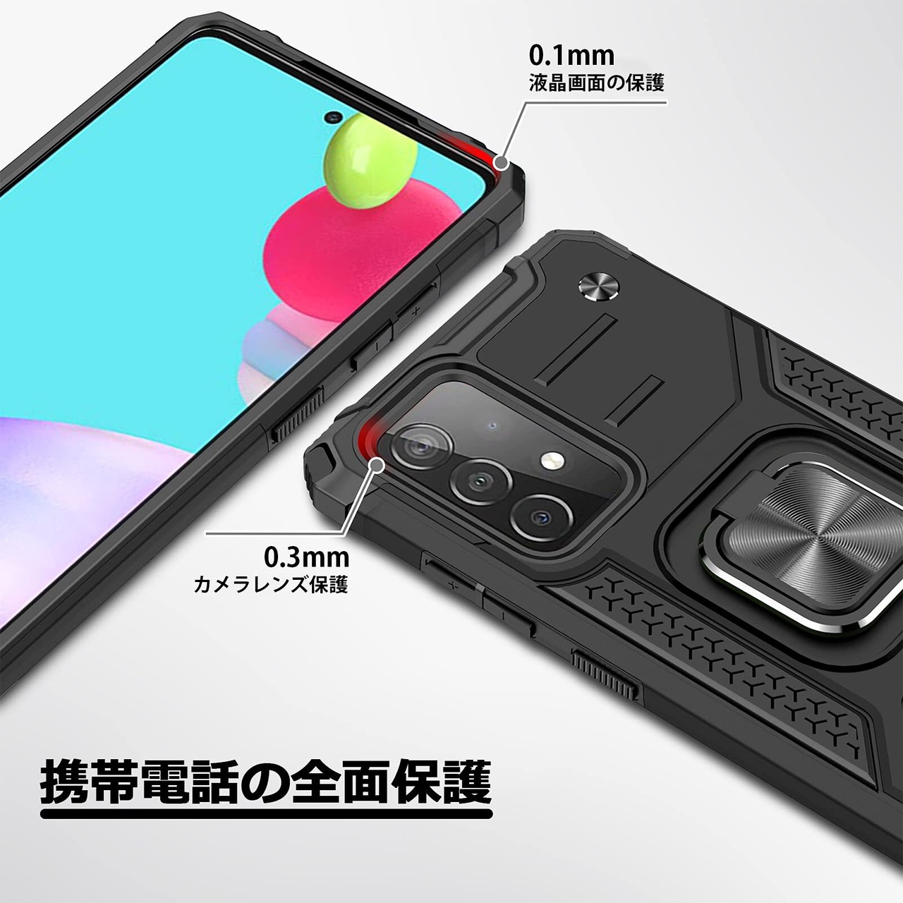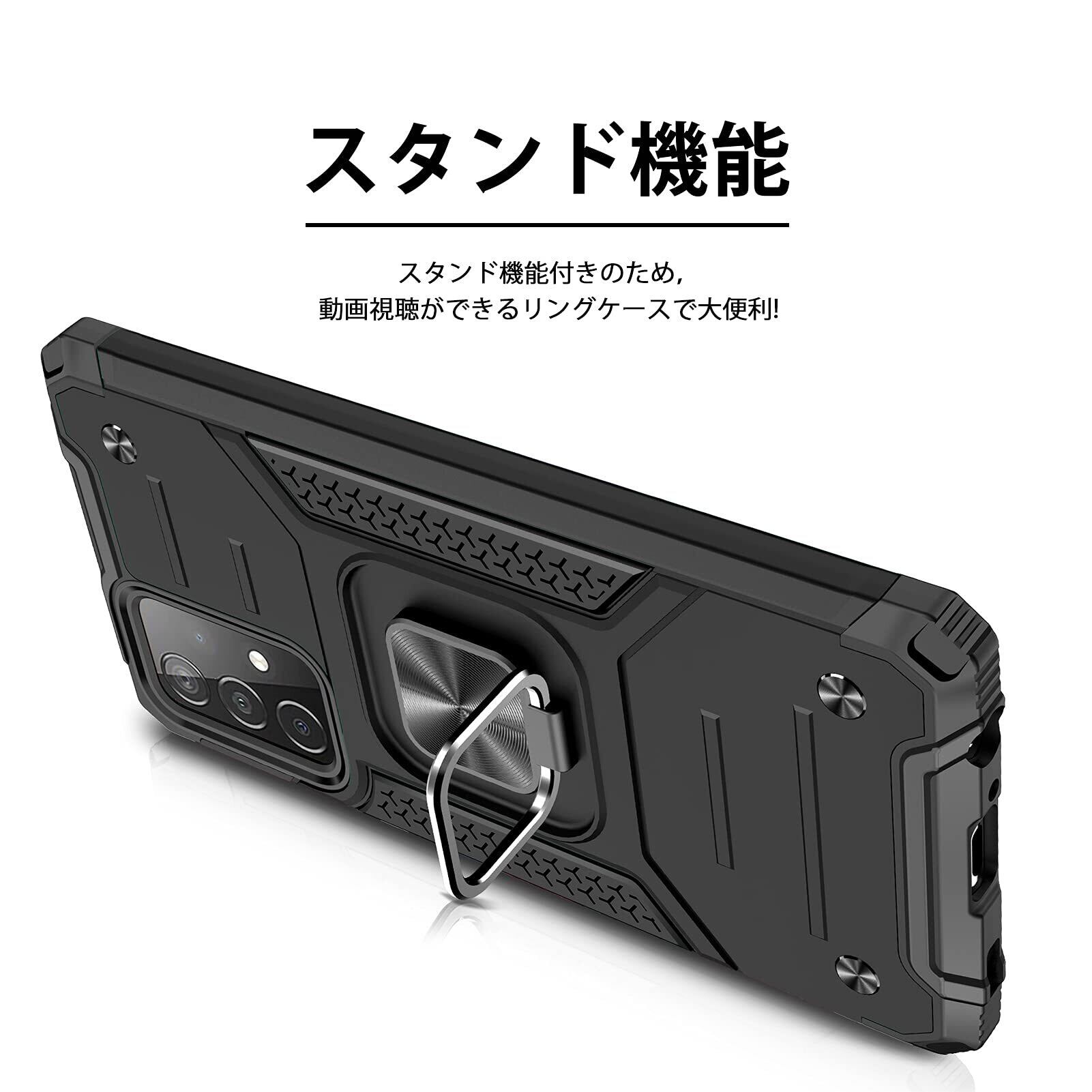 Galaxy A52 ケース リング 耐衝撃 レンズ保護 TPU+PC リングつき 指紋防止 車載ホルダー対応 スタンド機能 携帯カバー 黒 C82-00234(cp)