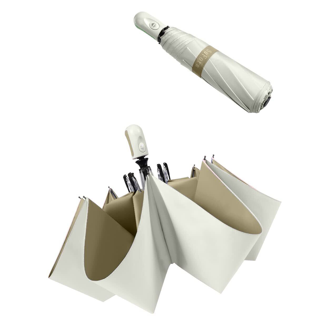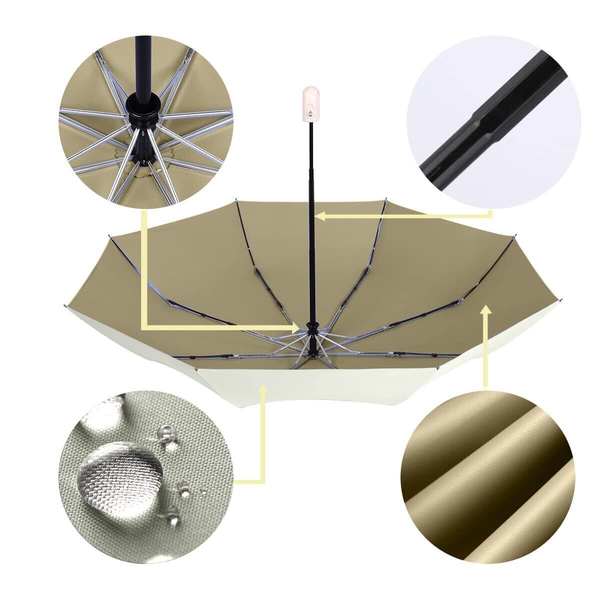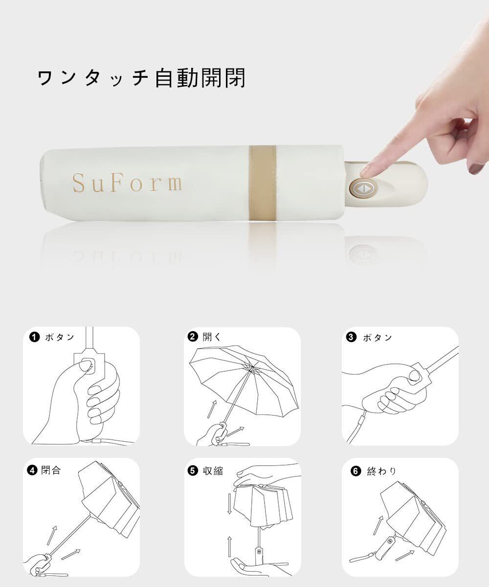 【ワンタッチ自動開閉おりたたみ傘】ワンタッチタイプのおりたたみ傘なので、荷物で手がふさがっていても、片手でボタンを押すだけでサッと自動開閉できます。車やバスなどの乗り降りの際もとても便利です。普通な通勤用カバンや車に常備しておけば、緊急天候にも対応できます。高品質ABS樹脂製のハンドルは、手にしっくりきて滑りにくく、長時間傘をさしても疲れにくいです。
