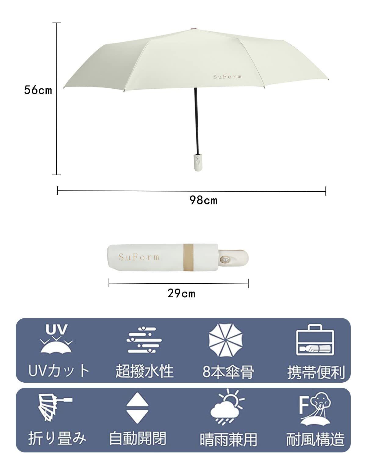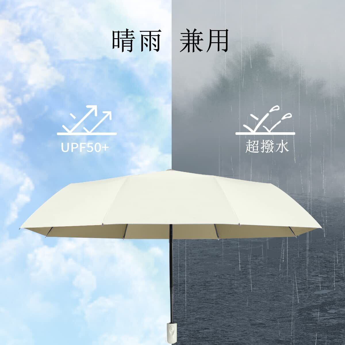 【晴雨兼用のビッグサイズ折り畳み日傘】:これはとてもシンプルな折りたたみ日傘です、マットな色合いで、男性でも抵抗なく使え、メンズ、レディース問わず、どんなシチュエーションやスタイルにも合わせやすい折りたたみ日傘になっています。また、開く直径が98cm、通常の日傘より大きめな日よけ範囲で、足元まですっぽり包み込み、男性では肩までゆとりがあり、肌を太陽光線、紫外線からガードできます。通勤通学、旅行、出張などに適しています。日傘としてだけではなく、梅雨対策や、急な雨にも対応できる晴雨兼用のおりたたみ傘です。