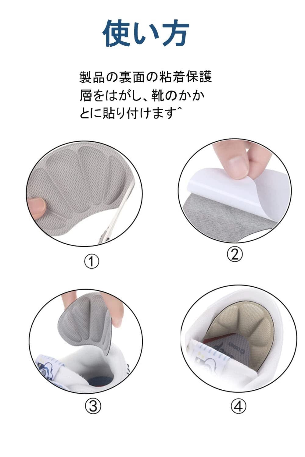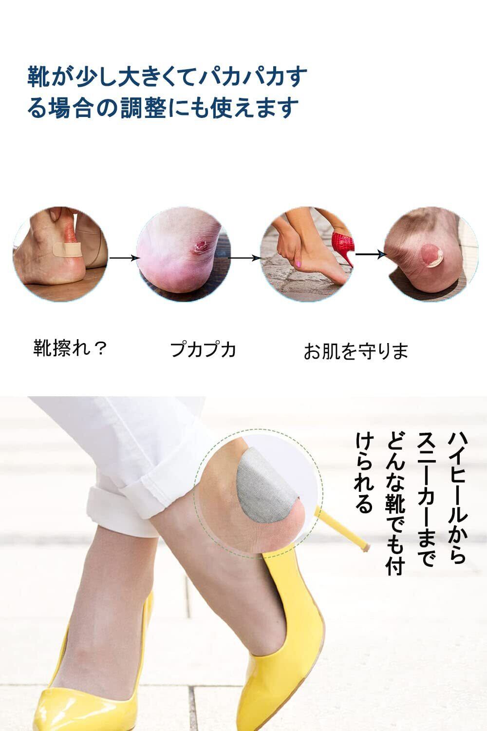 【使いやすい・滑り止め】靴ずれパッドの背面には粘着性の強いステッカー付き、裏紙を剥がしてきれいに拭いた靴に貼り付けるだけで簡単に装着できます。粘着性が強くてかかと部分に貼ると、滑り落ちる心配がありません。使い方は簡単で、初心者の方でも手軽に使用できます。