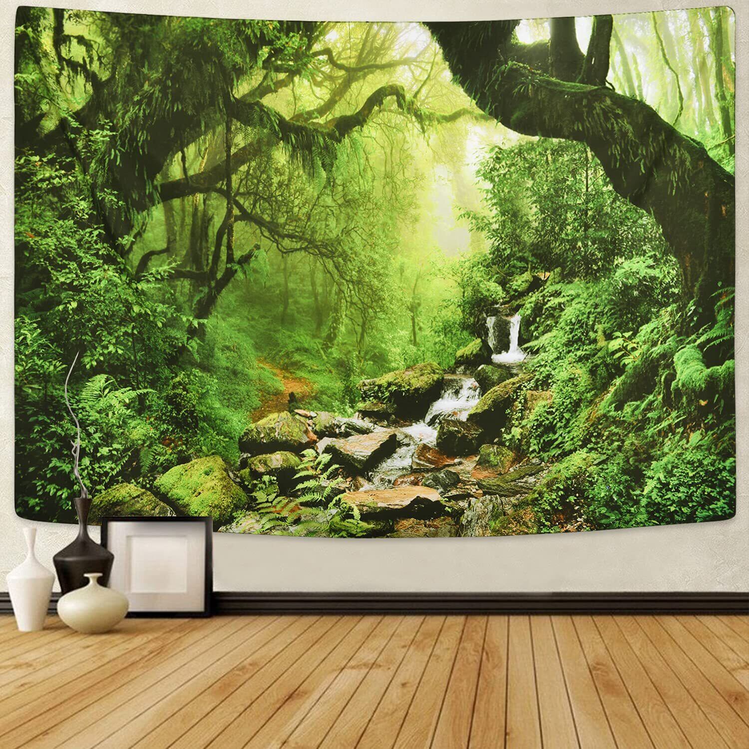 【数量限定】Pknoclan 森タペストリー 木 渓流柄壁掛けタペストリー 自然風景壁掛け布 210x150cm大判布ポスター 部屋 窓 模様替え インテリア飾り