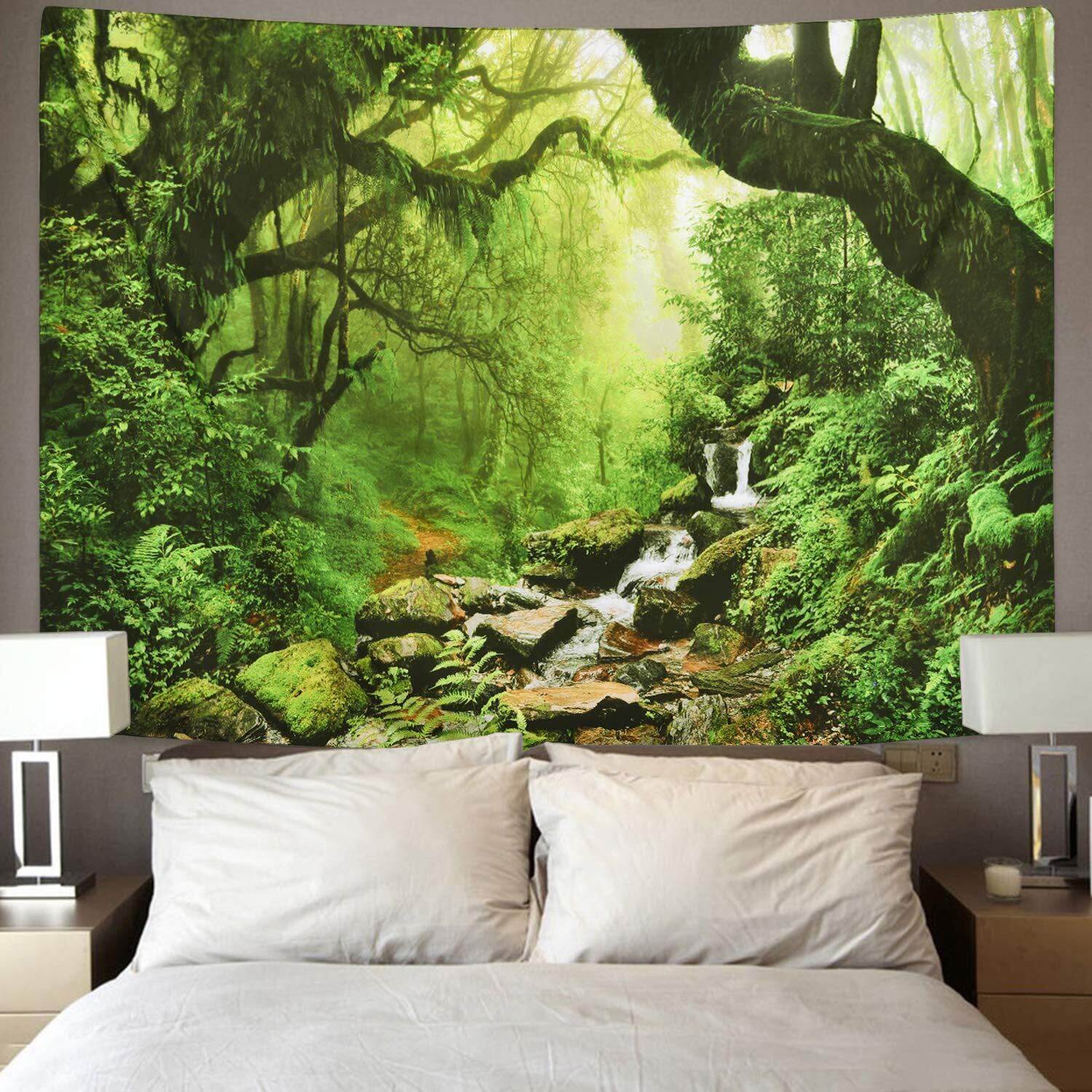 視覚インパクト:渓流柄タペストリーは3Dパターン印刷、鮮やかな色、色あせなし。掛けた瞬間空間の雰囲気を一気にイメージチェンジ。森の中にいるような気持ちが湧き出てきました。仕切りとしても使えますし、季節や気分に合わせて変えられます!