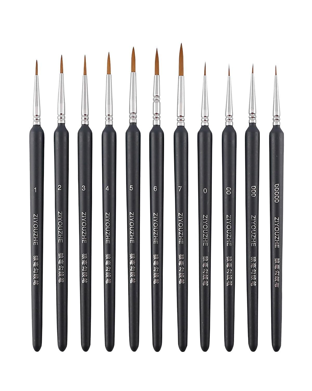 【セット内容】11本セット(#00000、#000、#00、#0、#1、#2、#3、#4、#5、#6、#7)豊かなサイズ、細い筆から太い筆まである程度揃っているのでとても使い勝手がいいです。きっちり色を塗るだけでなく、細かい部分の塗装でも扱いやすいです。