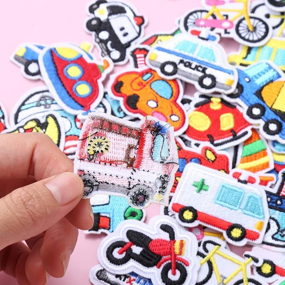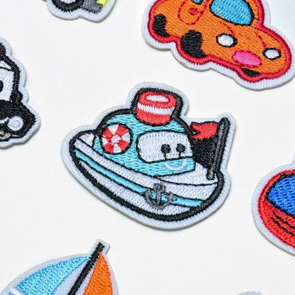 【在庫セール】YFFSFDC 乗り物 ワッペン 24枚セット 刺しゅうワッペン 車/船/ロヶット/バイク/自転車/飛行機 アップリケ パッチ アイロン接着 補修 DIY 男の子 子供 幼稚園 保育園 お祝い ギフト | わくわくSHOP