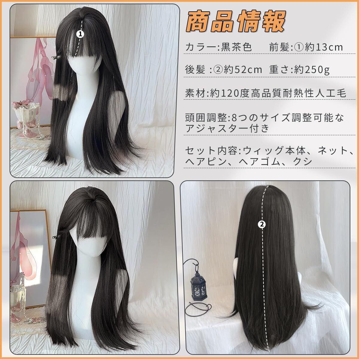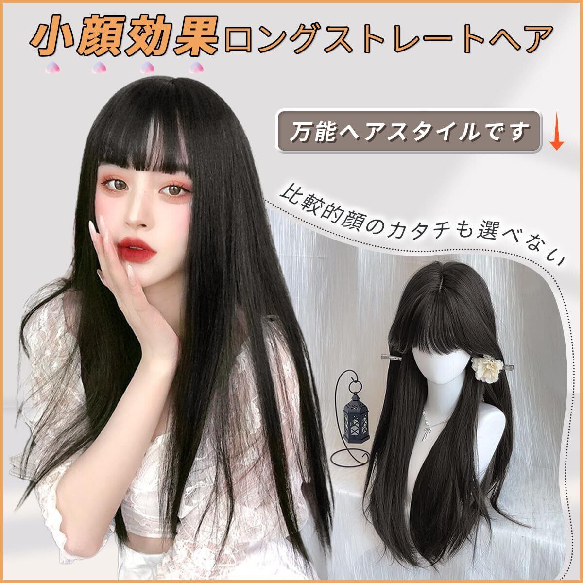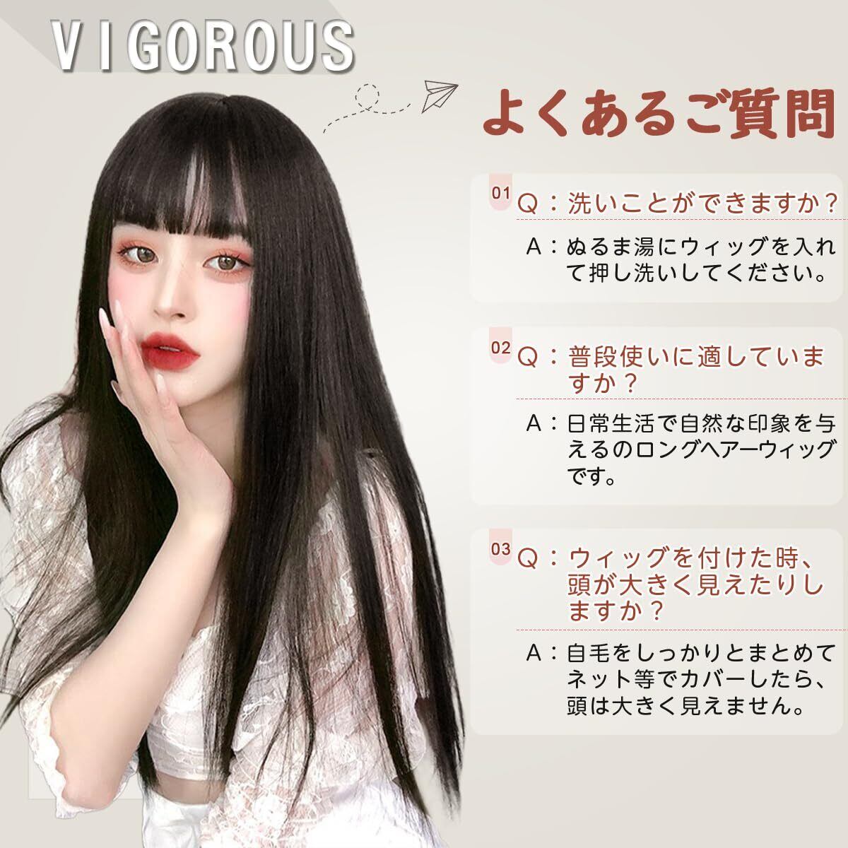 Vigorousウィッグ ロング 黒 ストレート ブラック 女装 かつら 黒髪 自然 フルウィッグ 小顔 地雷女 韓国風 ぱっつん前髪 耐熱wigネット付き