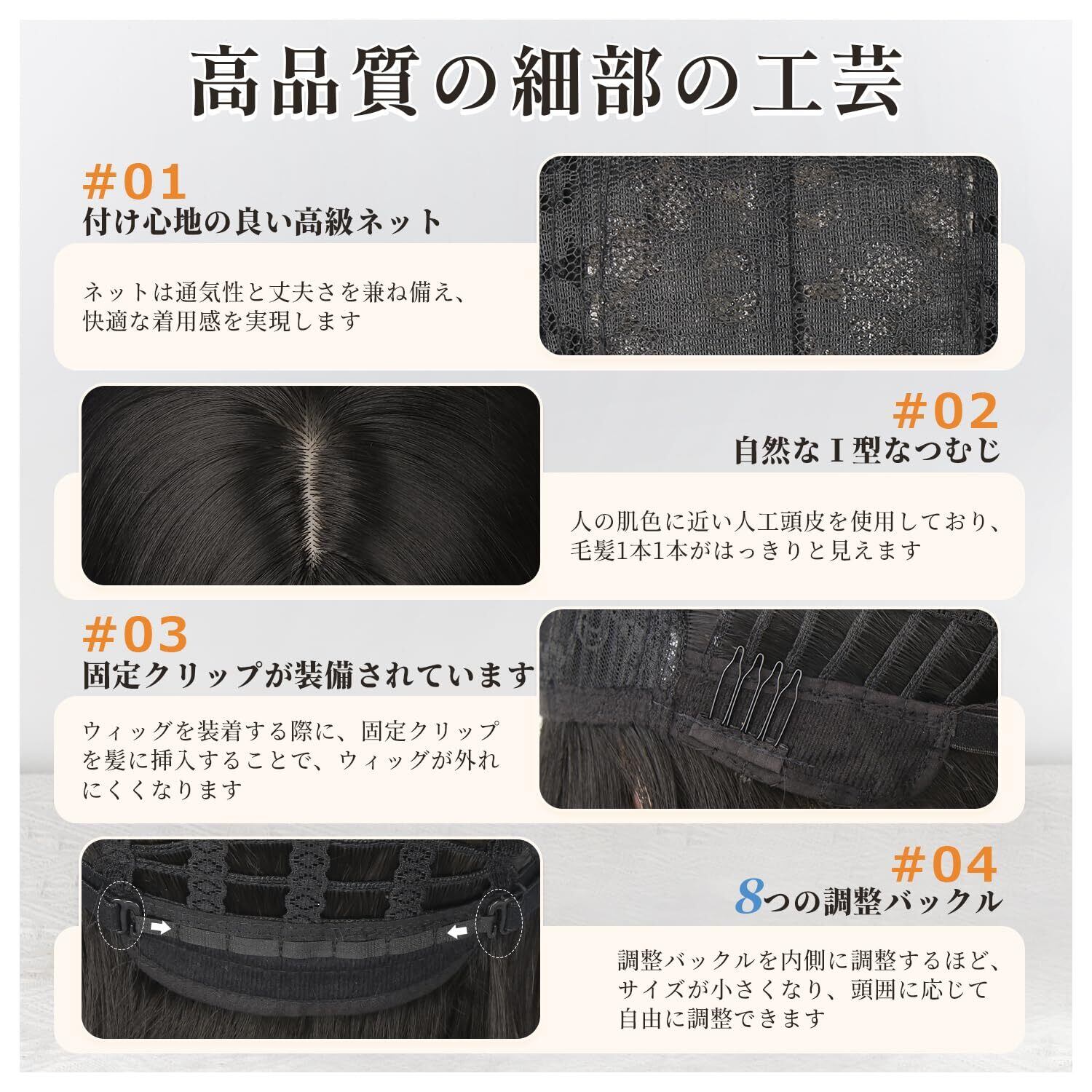 【サイズ】 :アジャスター付き、頭のサイズや毛量に合わせて、伸縮自在な調整が可能です。前髪:つむじから約13cm 後ろ:つむじから約60cm。
