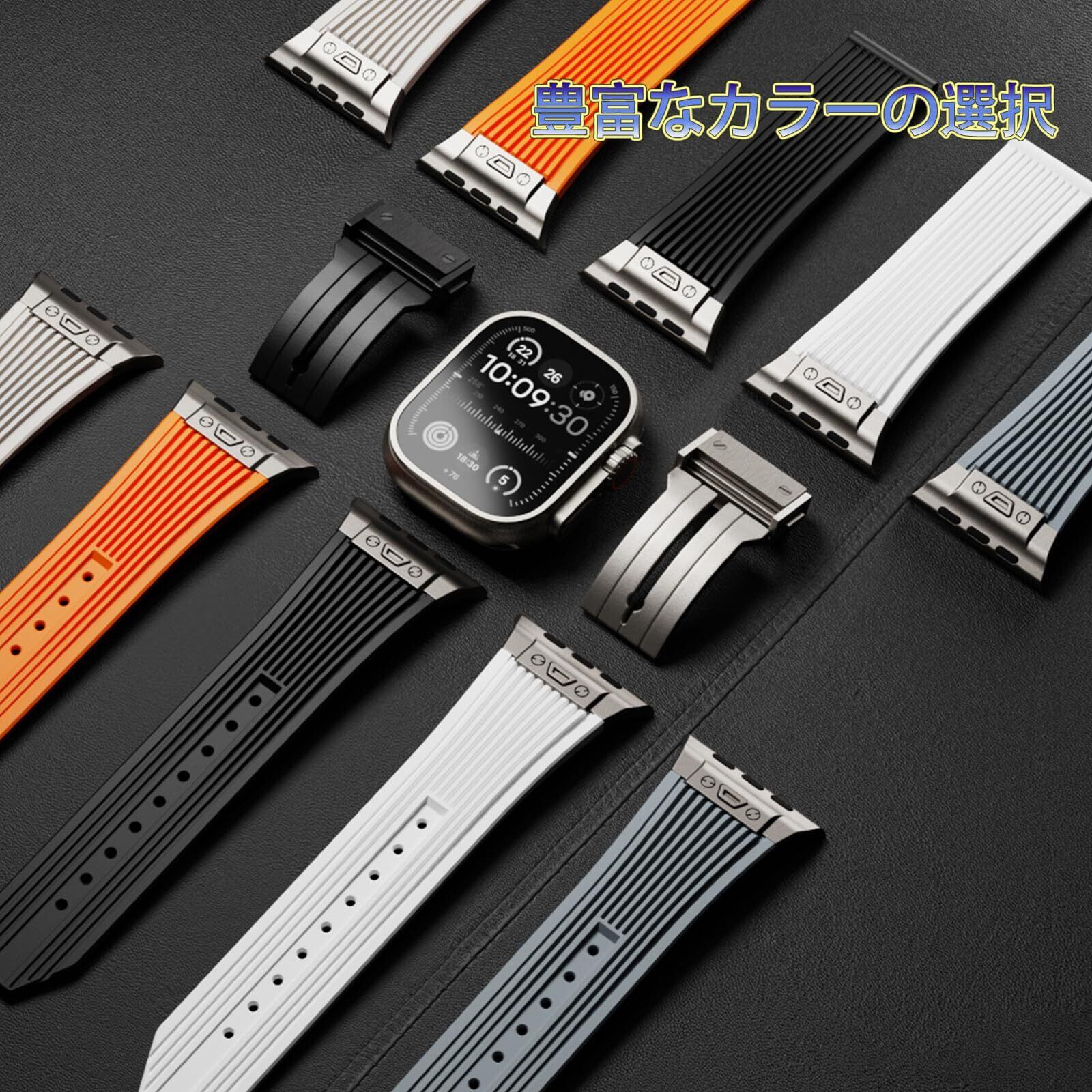 BinGeLi コンパチブル Apple Watch バンド 49mm 46mm 45mm 44mm 42mm アップルウォッチ スポーツ バンド シリコーン 交換用 高級ベルト 新型折りたたみ式バックル付き 耐衝撃 防水 防汗メンズ Watch Ultra2/Ultra Series 10 9 8 SE2 7 6 SE 5 4 3 2 1に対応