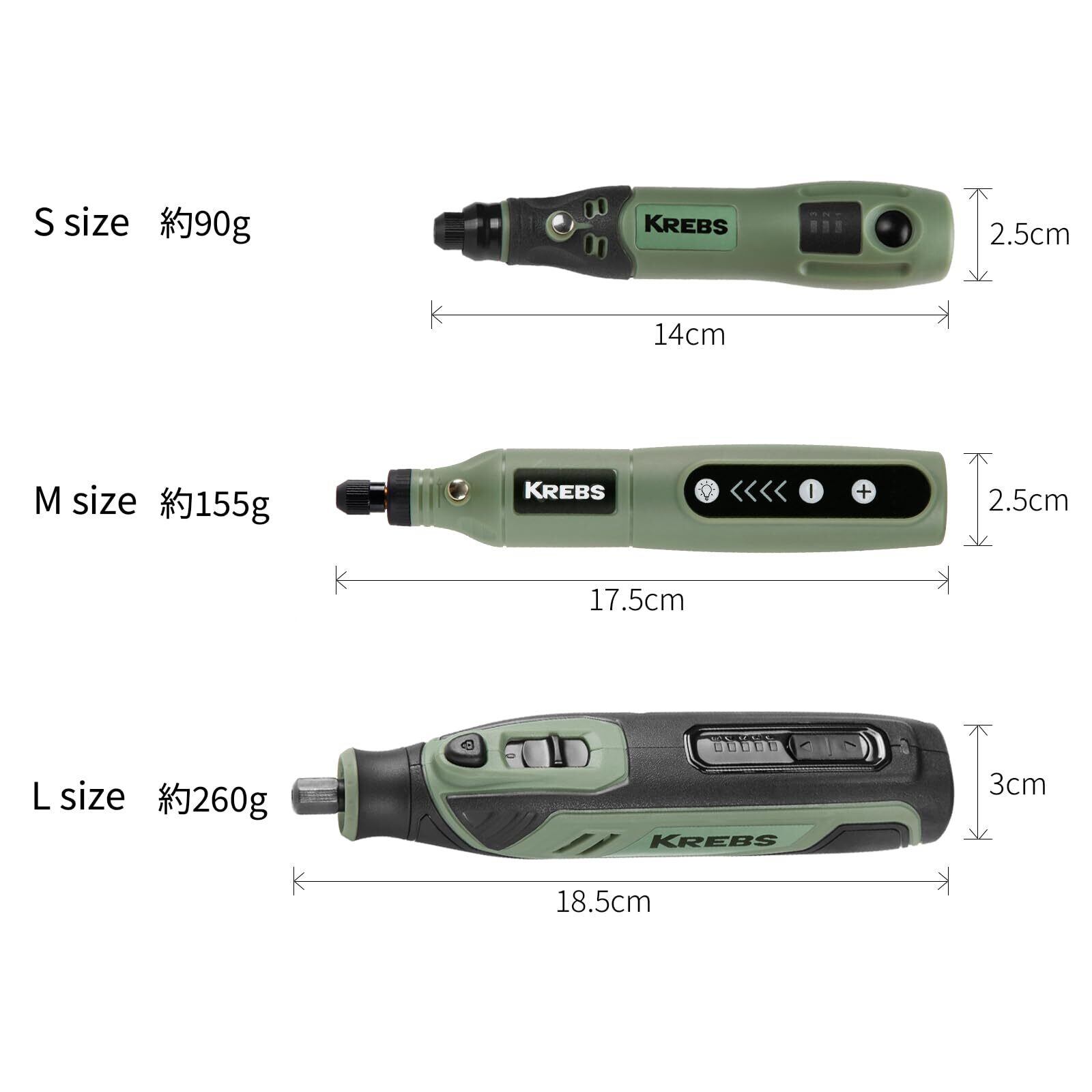 KREBS(クレブス) 充電ミニルーター(リューター)3.6V コードレス 超軽量 3段変速 最高15000rpm ビット31点セット 彫刻/研磨/切削/穴あけ/汚れ落とし/つや出し