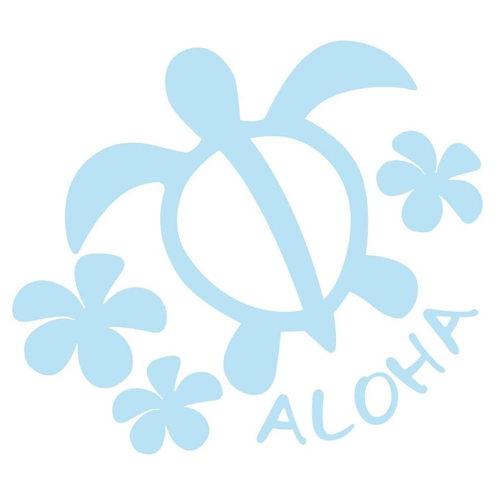 nc-smile ハワイアン ステッカー ホヌ HONU プルメリア ALOHA 耐水 屋外用 (M, 110mm×125mm, ミルキーブルー)