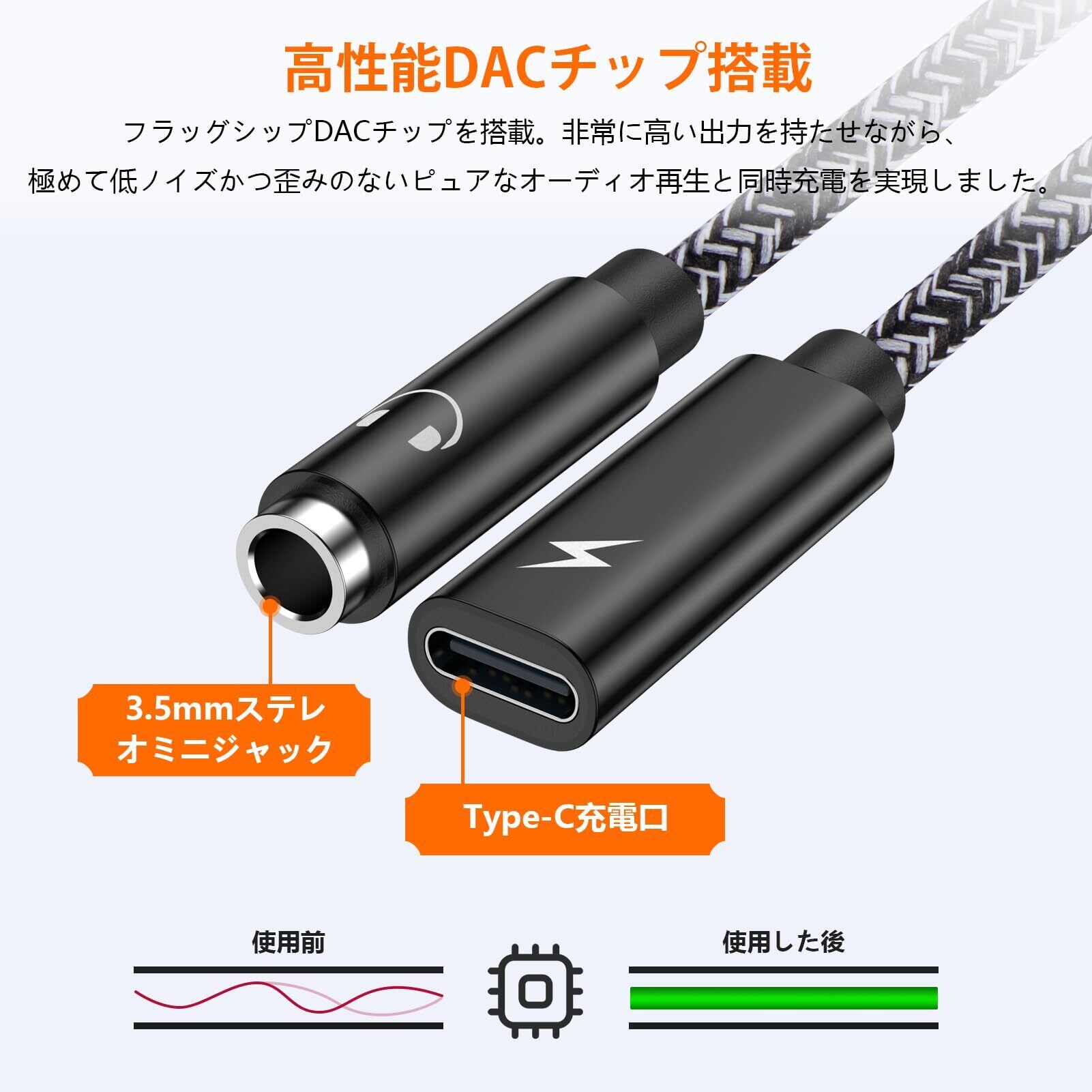 【数量限定】ChrisPow タイプC イヤホン変換 アダプタ USB Type-C to 3.5mm イヤホンしながら充電 15cm DACチップ PD20W急速充電 4極TRRS イヤホンジャック 変換 タイプC ヘッドフォンジャック 通話/音楽/音量調節/マイク HiFi音質 Auxオーディオ変換 充電イヤホン2in1 ケーブル ヘッドホン iPhone15 Galaxy(ブラック01)