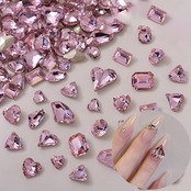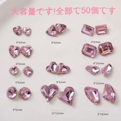 【50個セット】セット内容:ネイルパーツハート8mm×9mmの15個、11mm×12.3mmの15個、楕円形、三角形など20個(上の写真参照)。合計50個入。独立したボックスに入っているため、収納が簡単で便利です。