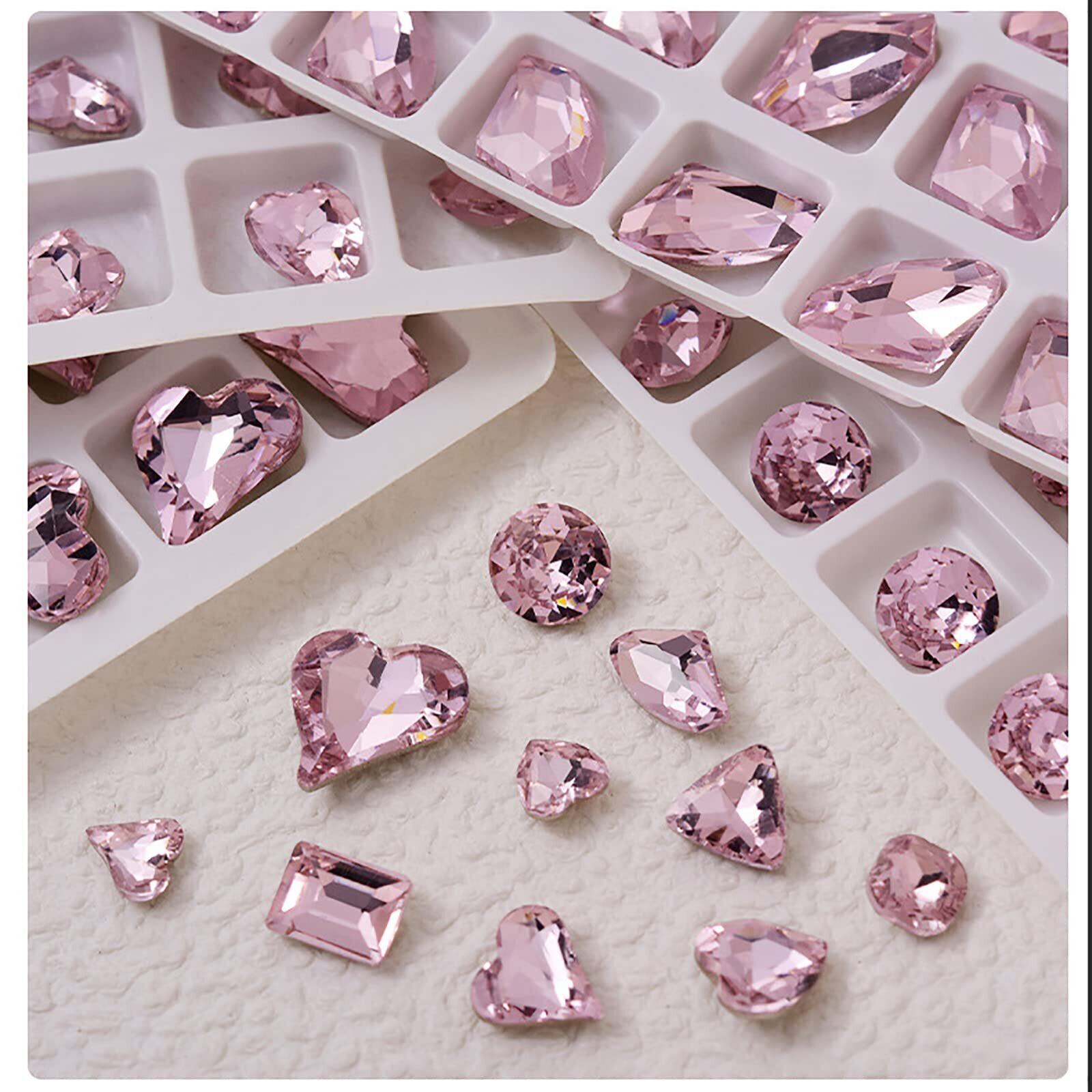 【きらきら】ネイル ガラスストーンはカットが綺麗でキラキラと輝くガラスストーンです。ガラスダイヤモンドは、ガラス素材で作られているため、美しく光沢があり、高級感があります、いつまでも光沢感を保つことができます。ハートのラインストーンはダイアモンドのように切断面を持ち、ご指先をキラキラと輝いています。