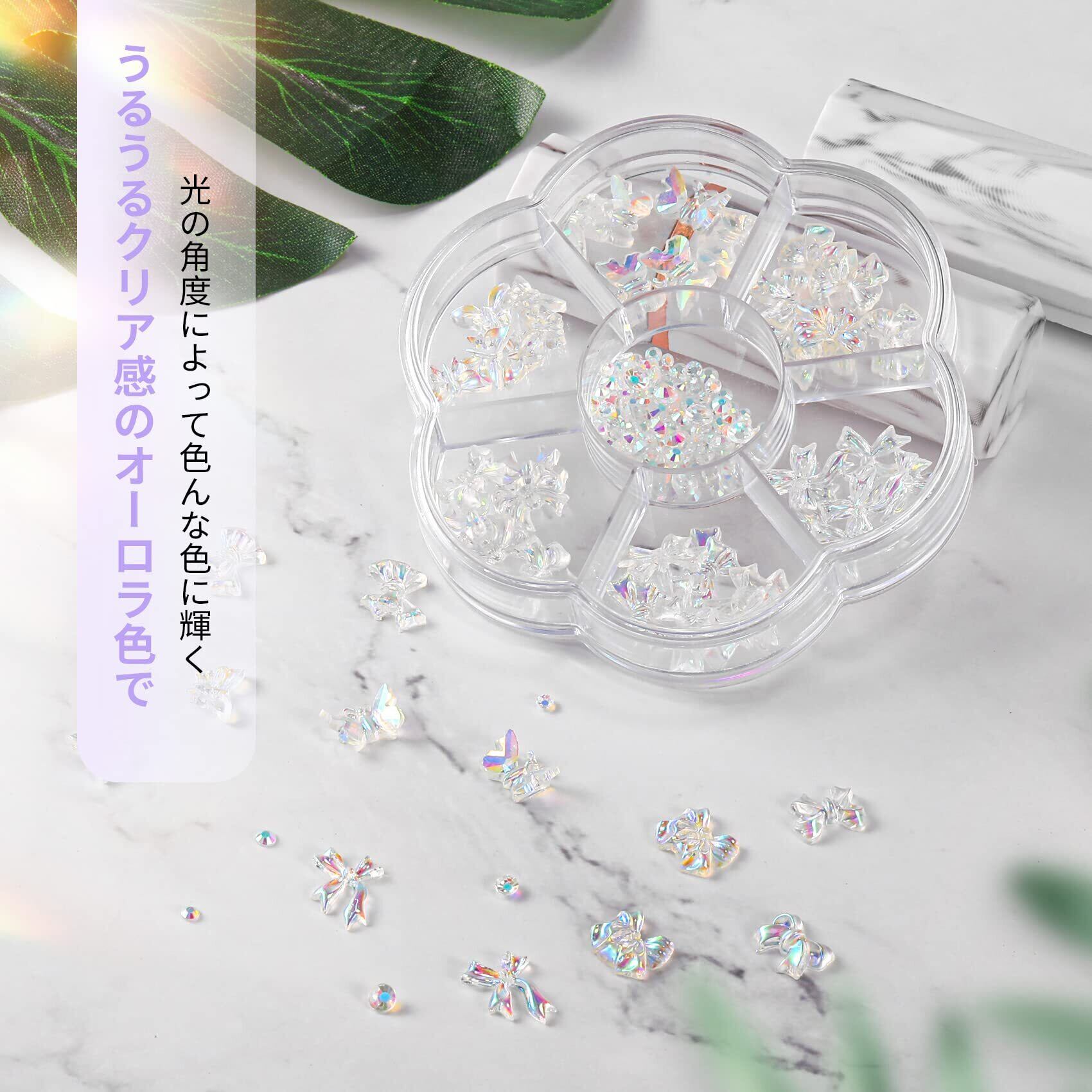 【在庫セール】Annhua ネイルパーツセット 3D 立体 デコパーツ ネイルアート オーロラ 立体的な蝶々 リボン 蝶々パーツ ラインストーン ジェムストーン ジェルネイル ジュエリーパーツ ネイルデコレーション 手作り レジン封入パーツ キラキラ ネイルデザイン | わくわくSHOP