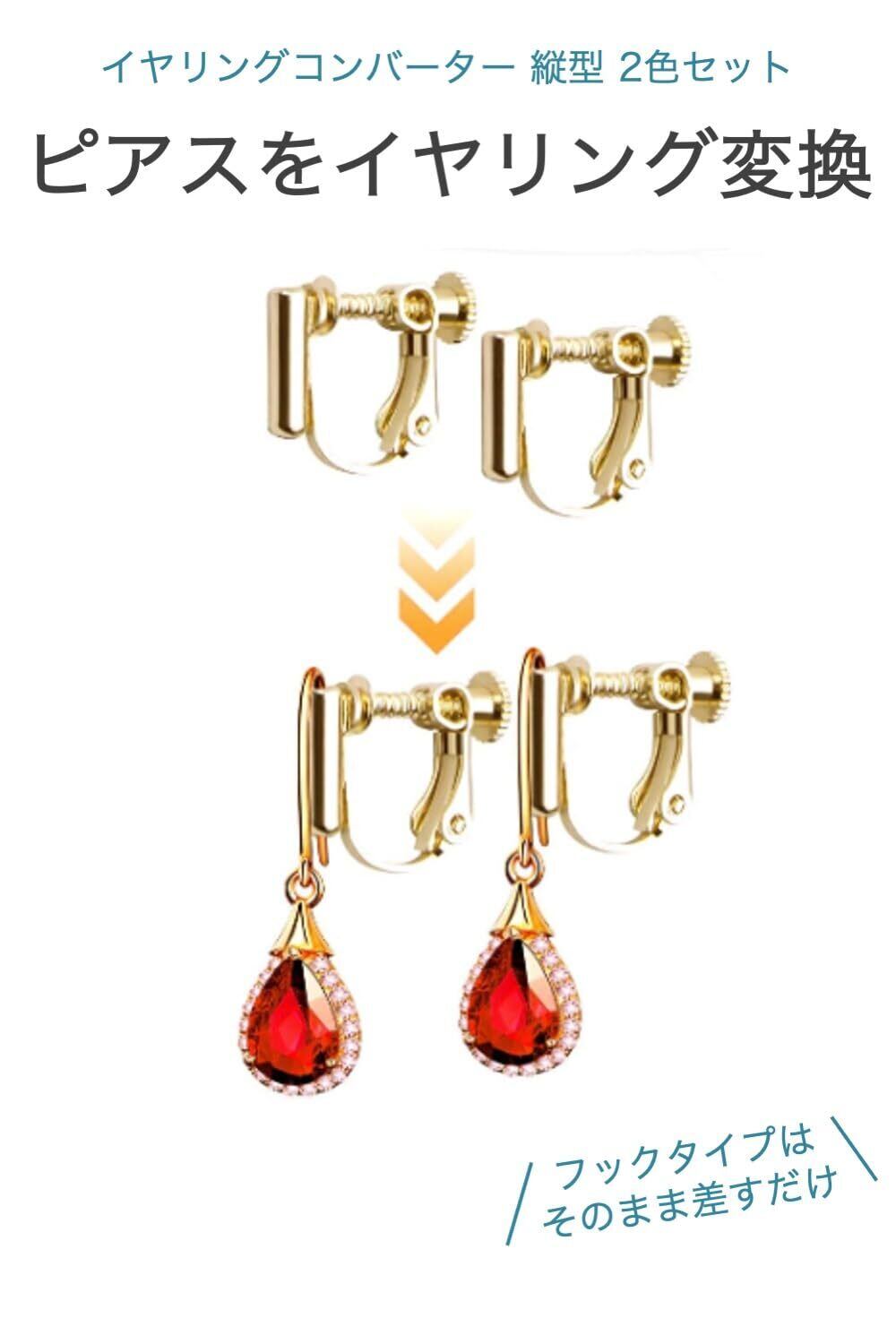 ピアスをイヤリングに変換するイヤリングコンバーター 縦型 ゴールドとシルバーの2色セット(2組4個) コンバーターを使えばイヤリングとして着用できます。 横型に比べて、縦型は見た目の位置が高くなる