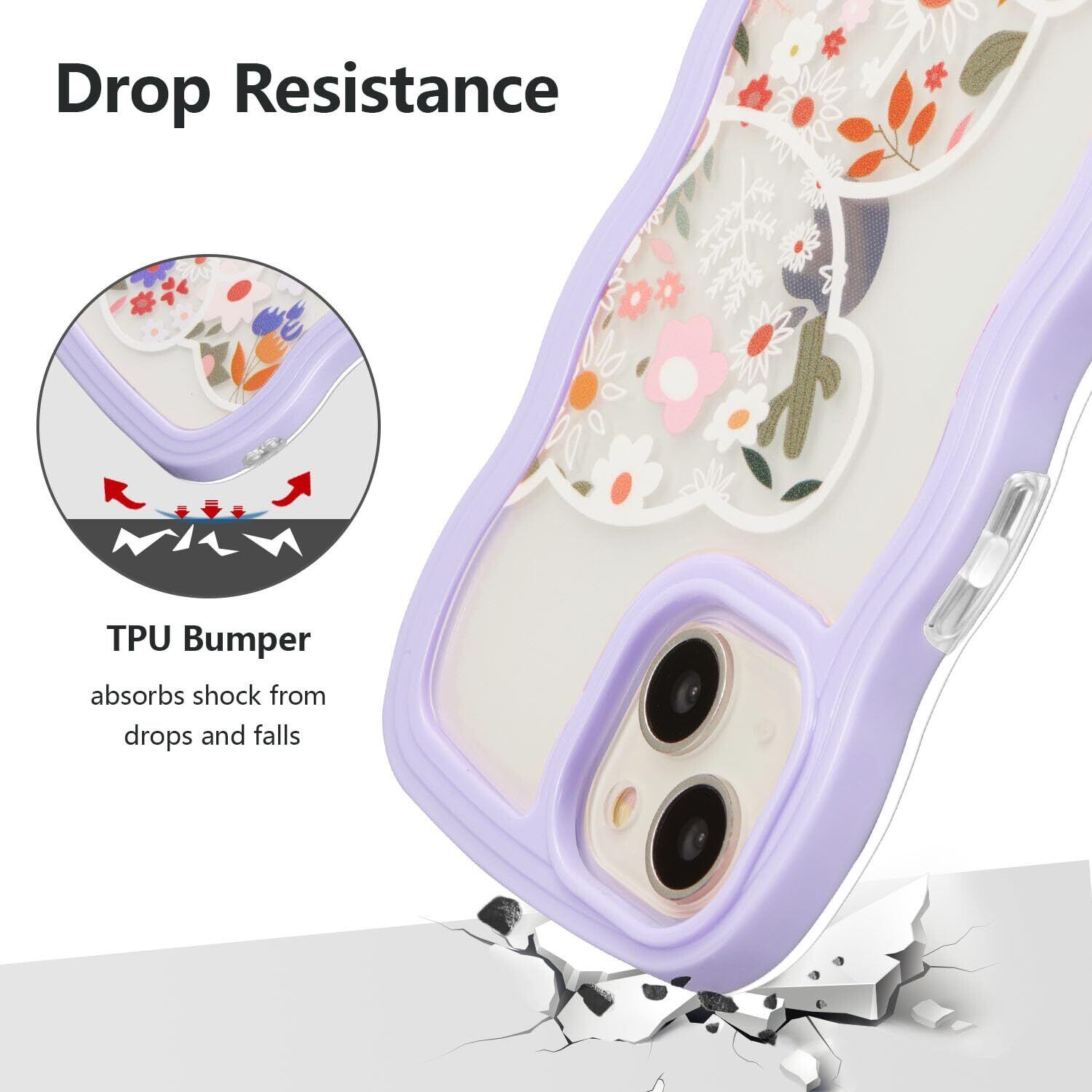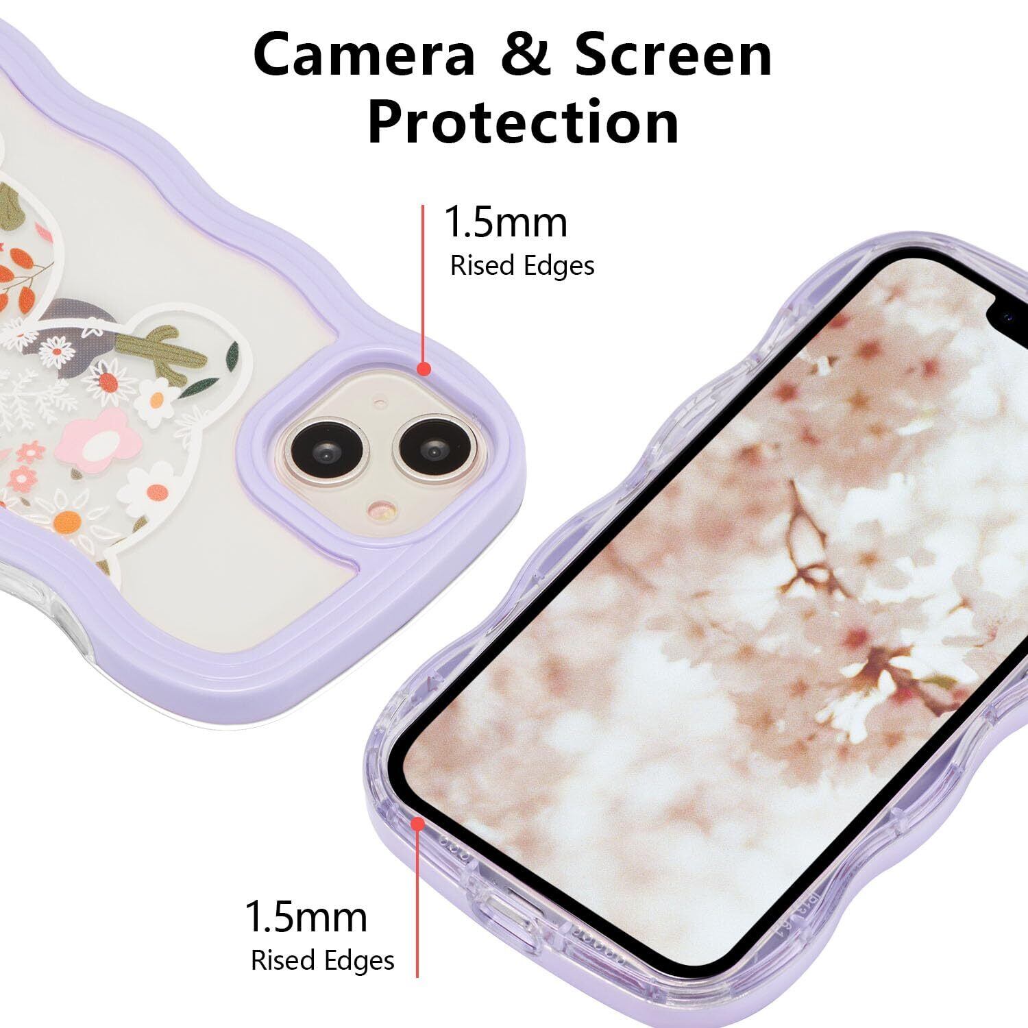 QLTYPRI iPhone 15ケース クリア TPUカバー おしゃれ 韓国 可愛い 透明 薄型 軽量 耐衝撃 スマホケース ワイヤレス充電対応 ストラップホール付き アイフォン 15 ケース 6.1インチ 対応 - パープルフレーム & クマ