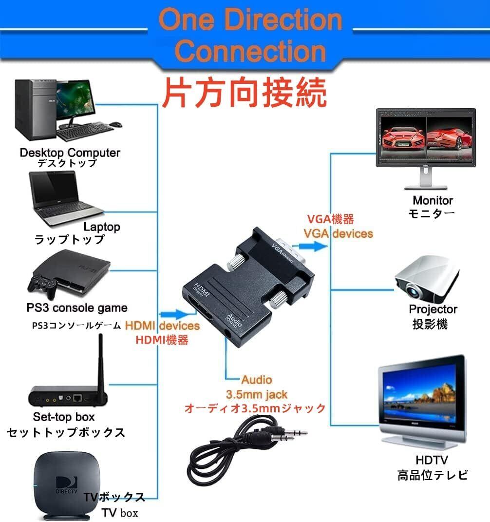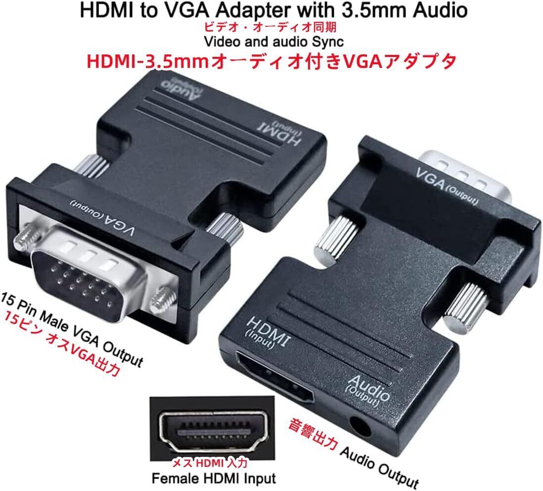 【新春セール】DTECH HDMI メス to VGA オス 変換 アダプター 音声出力対応 HDMI ミニD-sub15ピン 変換 コネクター プラグ フルHD 1080p ビデオ出力 中継 延長 コンバーター 3.5mmミニジャックオーディオケーブル付き | わくわくSHOP