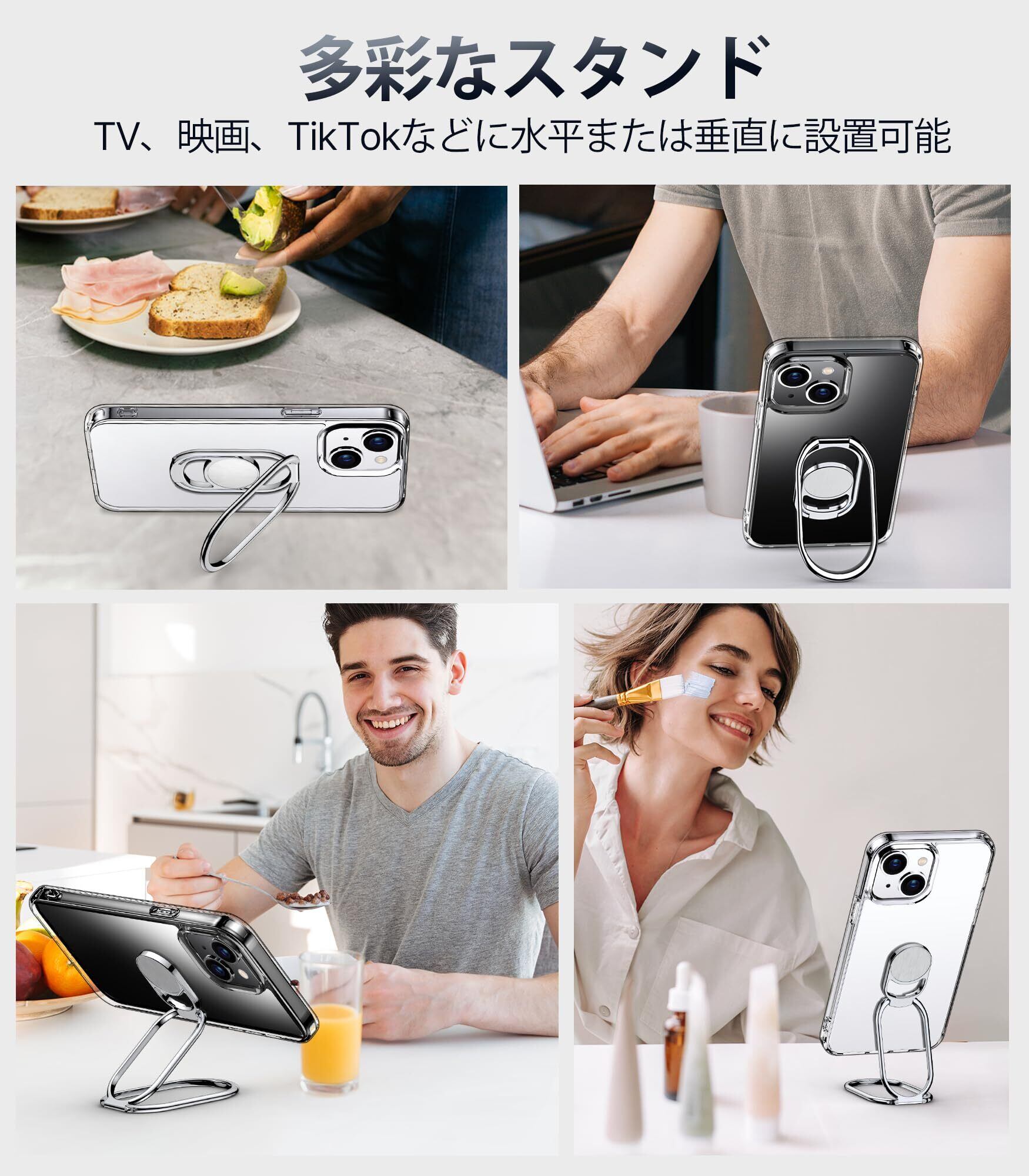 Rockaway iPhone 15 用 ケース スマホリング スマホグリップ 角度調節可能 折り畳み 耐衝撃 スタンド機能 軽量 落下防止 スマホケース アイフォン15 用カバー 6.1インチ - クリア