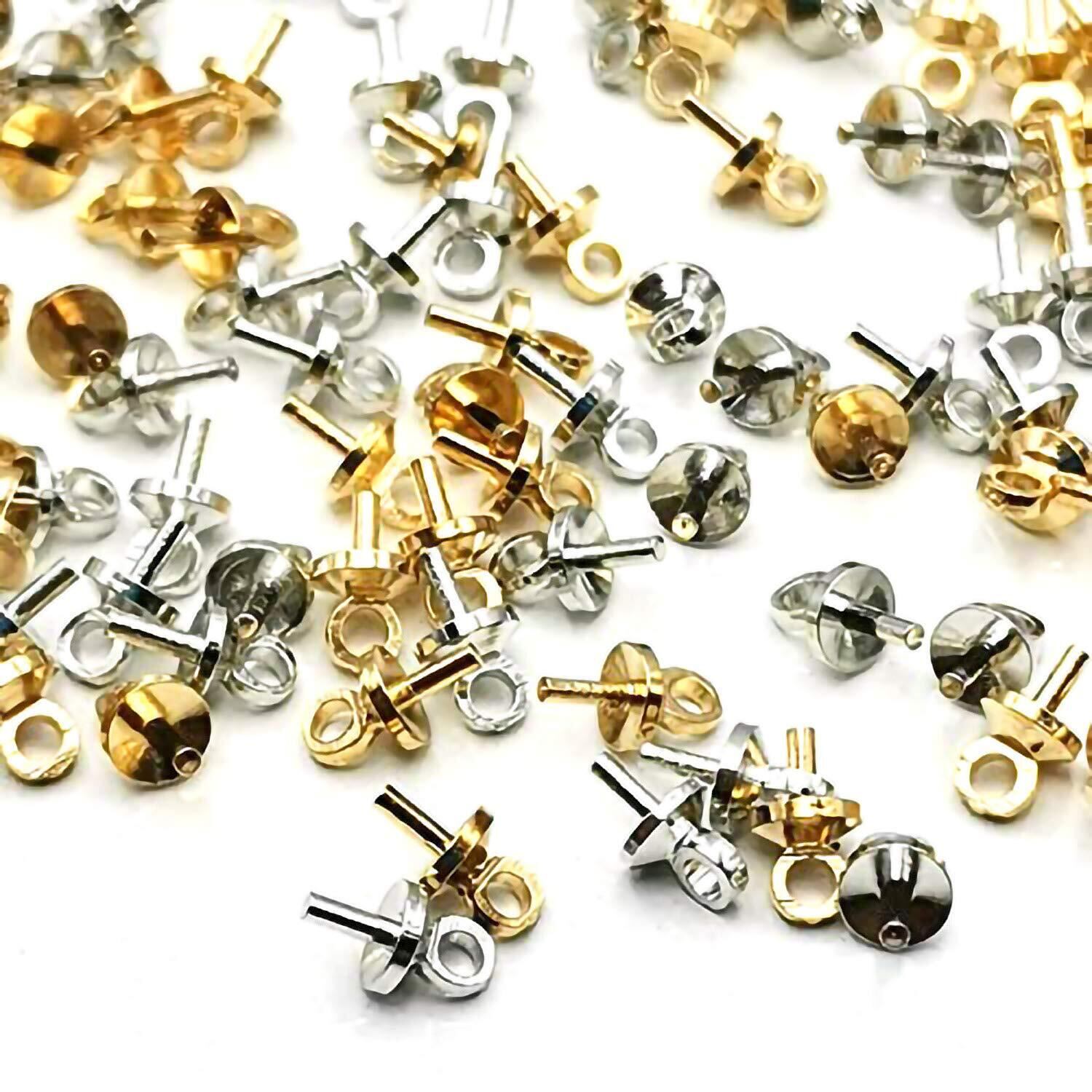 【在庫セール】【BEAUTY PLAYER】ヒートンキャップ 挿入ヒートン 4*8mm ゴールド*50個+シルバー*50個 uvレジン アクセサリー パーツ 金具 ハンドメイド 手芸 クラフト DIY | わくわくSHOP