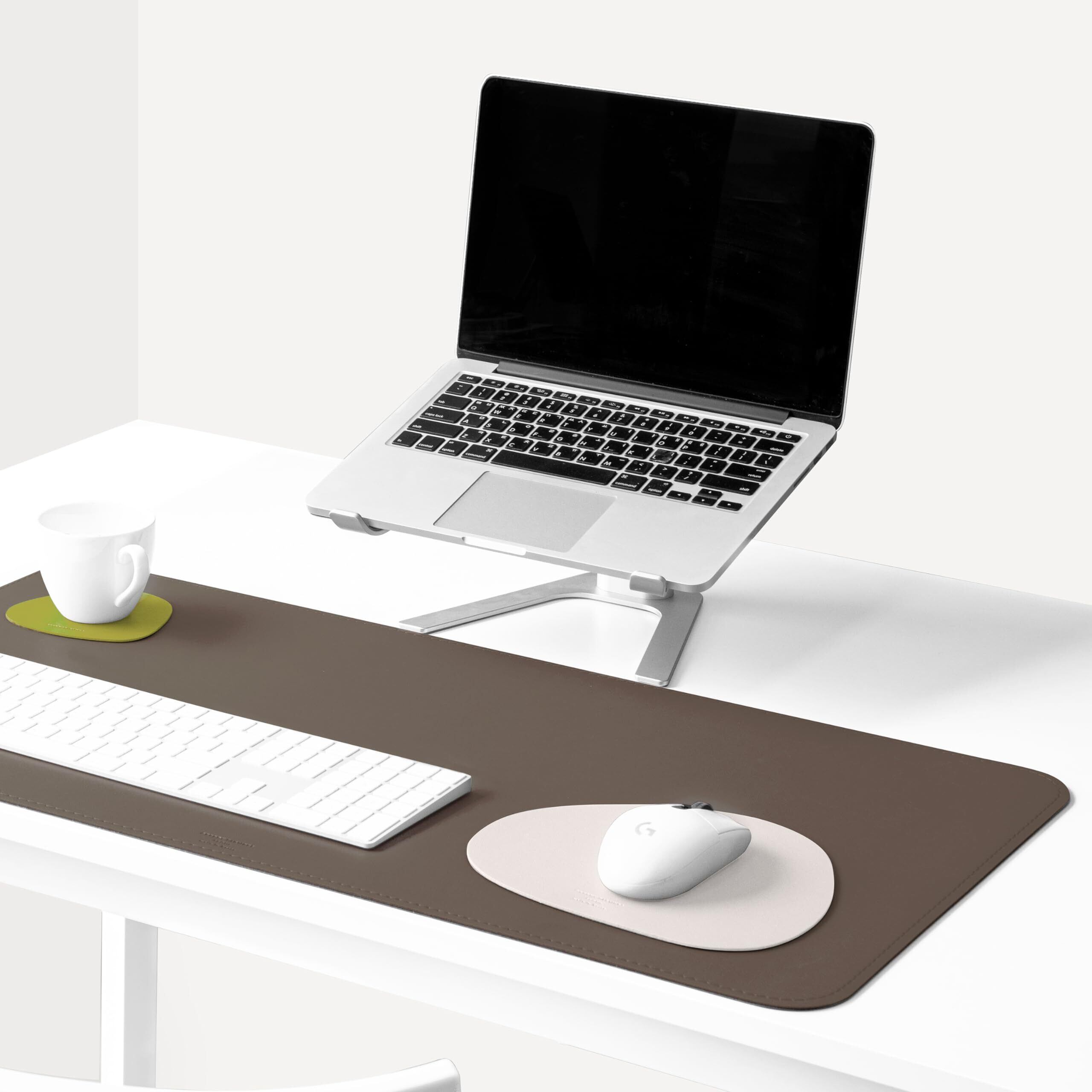 【滑り防止ノンスリップパッド】 マウスパッドの裏面に耐熱性の優れた高級ノンスリップパッドを付着しました。 机から簡単に押されたり滑ったりせず、不便なく安定感持って使用できます。 前面は雰囲気のある革の生地、裏面は実用性の高いノンスリップパッドを使用して デザインと実用性両部分を全て満たす製品です。