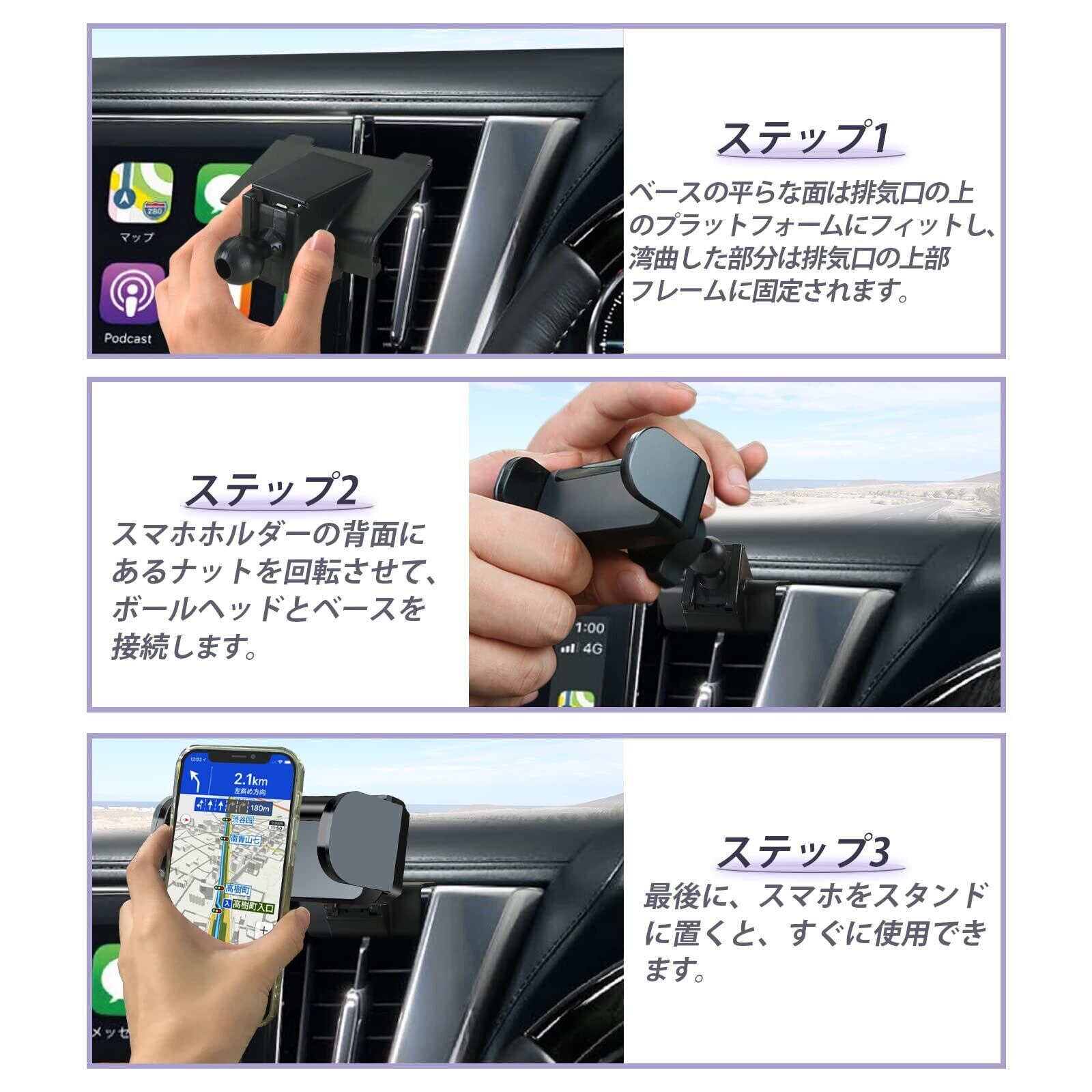 【エアコン吹き出し口式】設置位置はエアコン吹き出し口で、クリップ式のベースではありませんので、エアコンの部品を壊されません。さらに、インストールは簡単です。他社のスマホホルダーと比べて、サイズがもっとミニで精巧で、基盤が固いで、視界を妨げず、エアコンの性能に影響を与えません。
