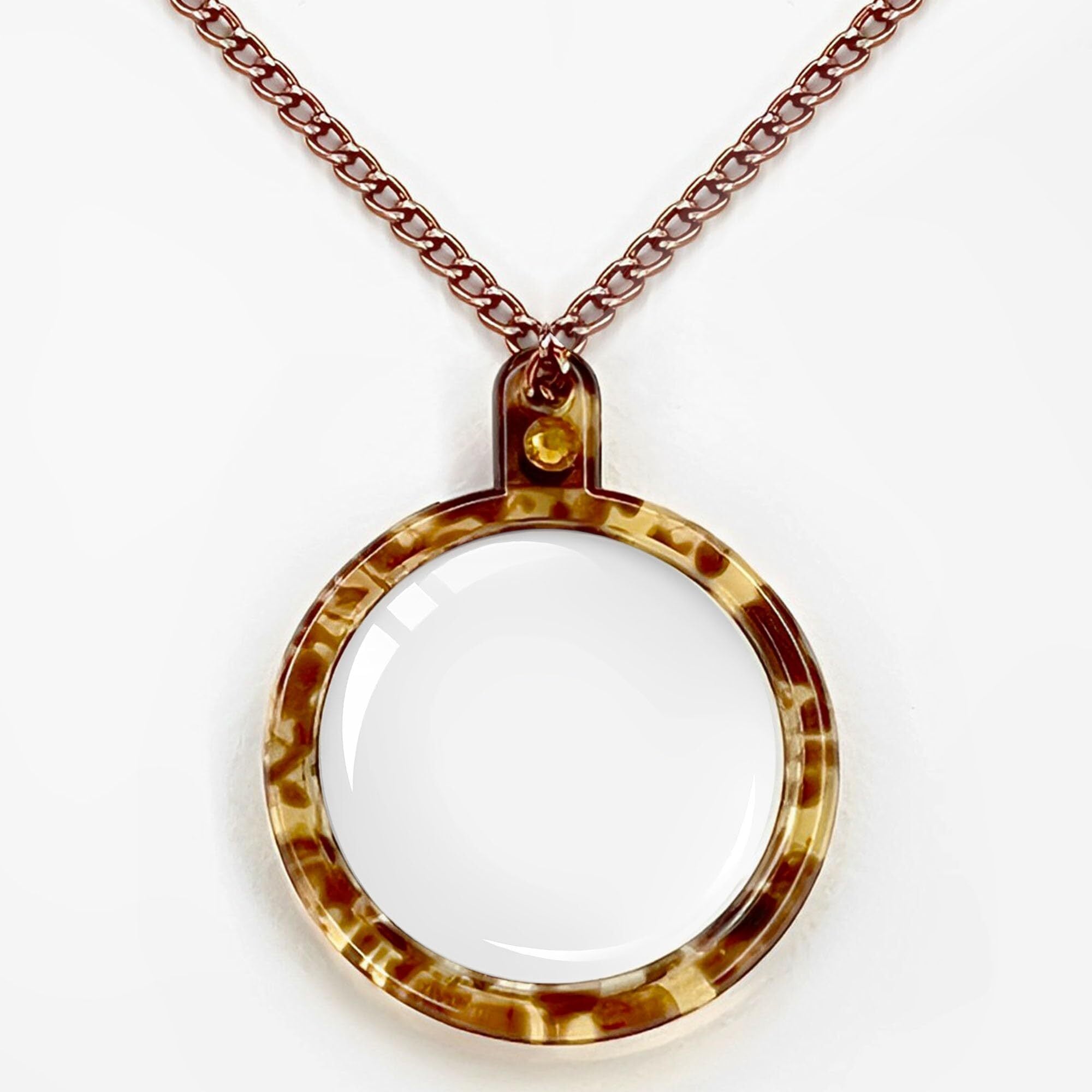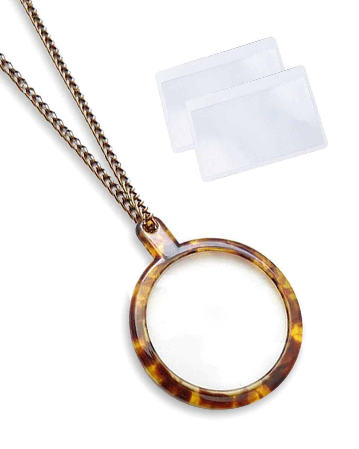 【虫眼鏡 おしゃれ 倍率】 ルーペ付きロングネックレス 3倍の倍率 タートルシェルパターンネックレス拡大鏡/ペンダント拡大鏡、80 cmネックレスチェーン、ガラスレンズ、収納バッグ。