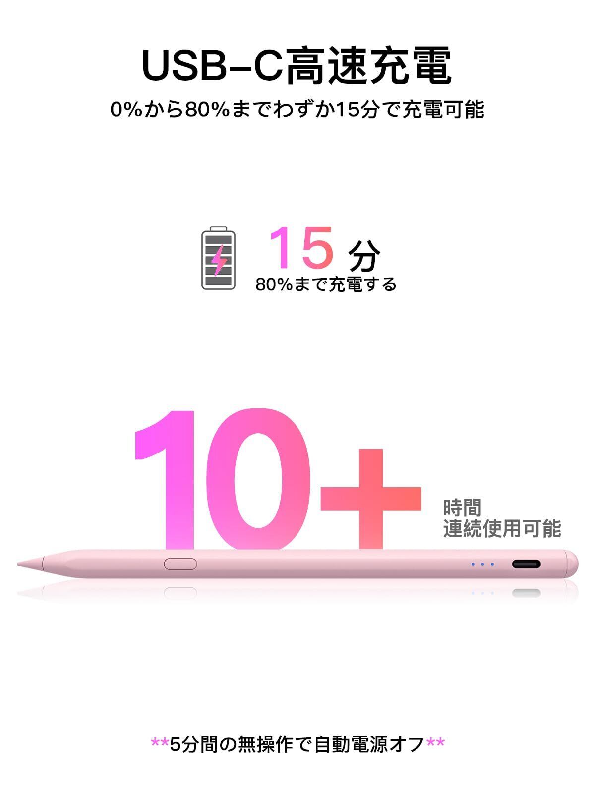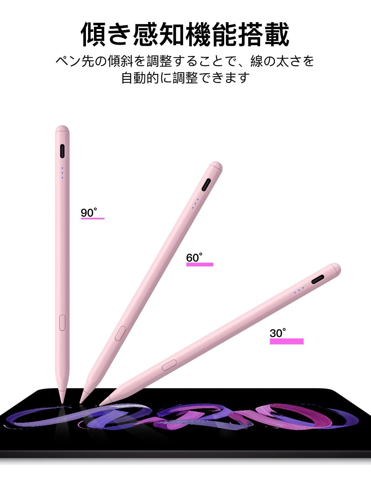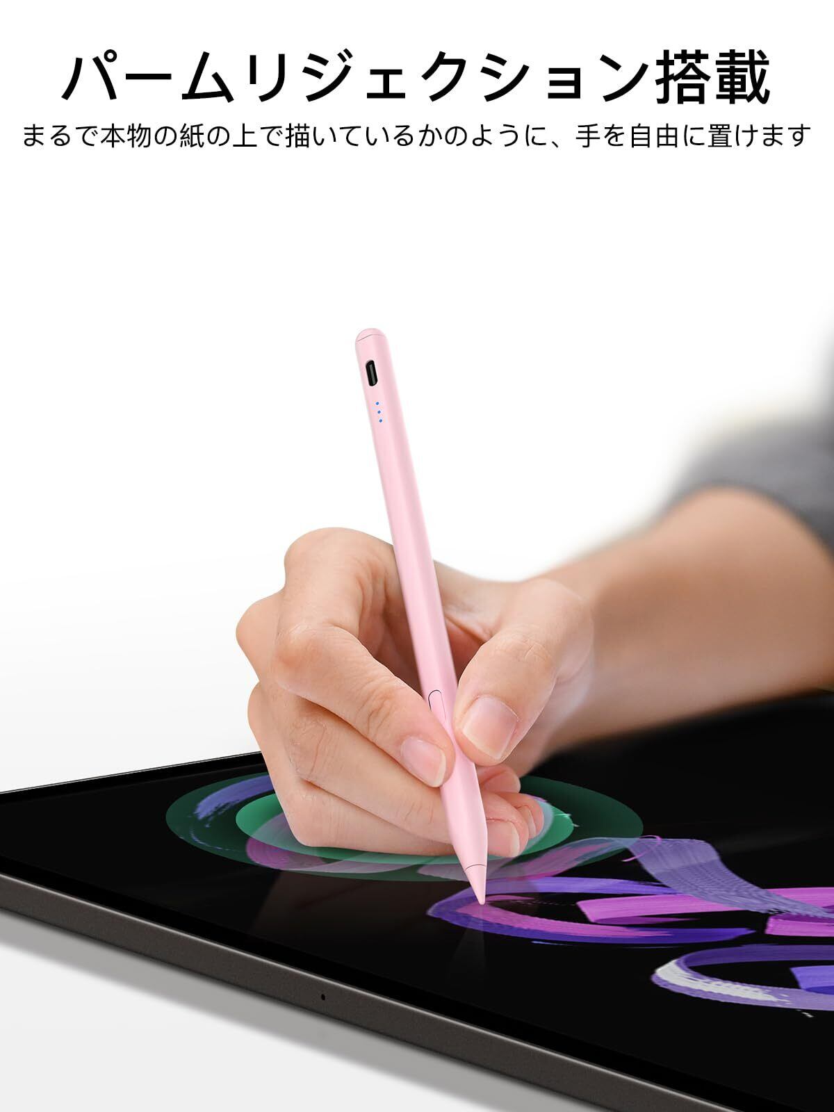 【ワンクリック取り消し・極上体験】アップルペンシル 2018年以降iPad対応 Type-C急速充電 タッチペン iPad ペンシル 傾き感知/パームリジェクション/超高感度/磁気吸着/スタイラスペン 替え芯3枚付き iPad 11/10/9/8/7/6、iPad Pro m4 13"/12,9''/11''インチ、iPad Air M2/5/4/3、iPad Mini 7/6/5に対応 ピンク
