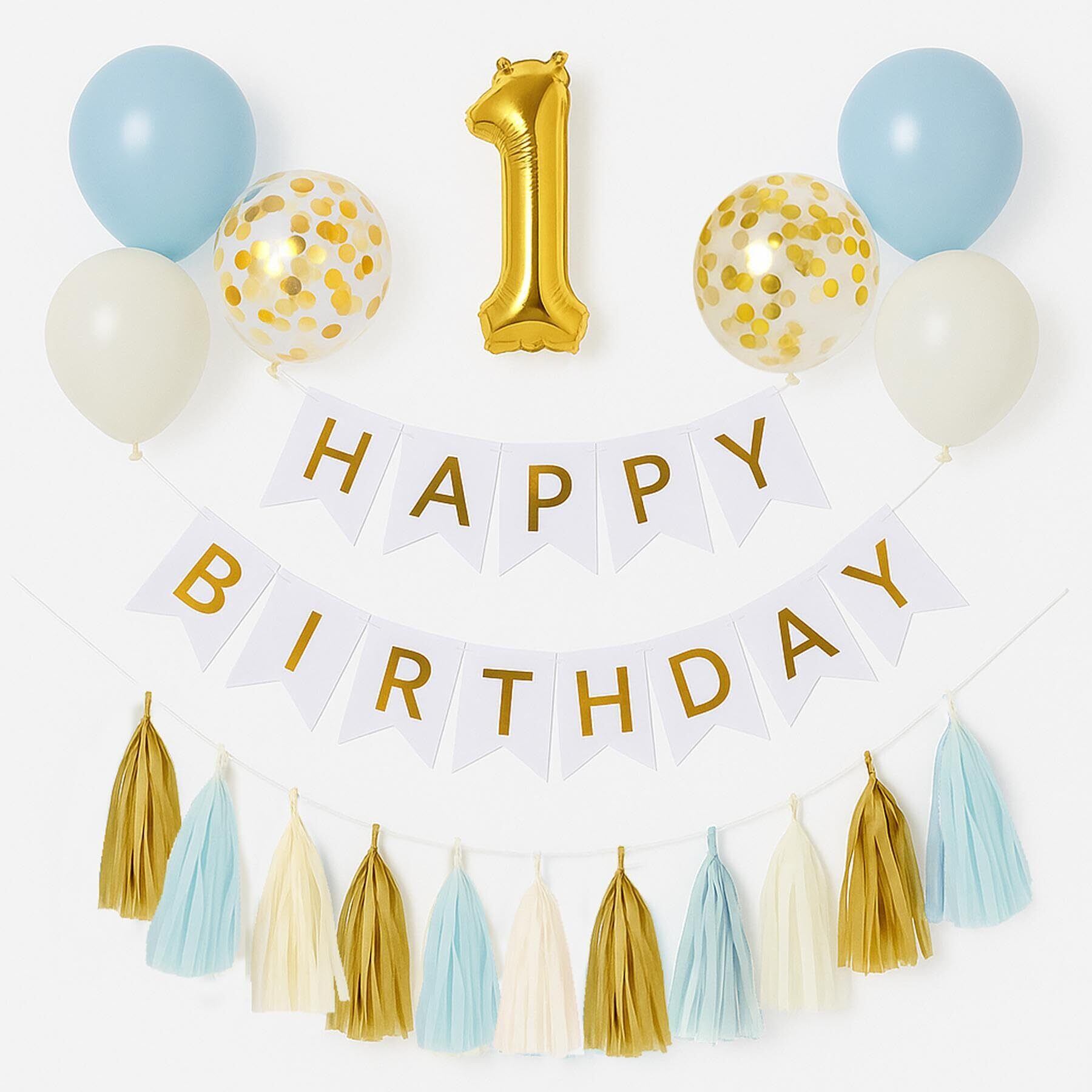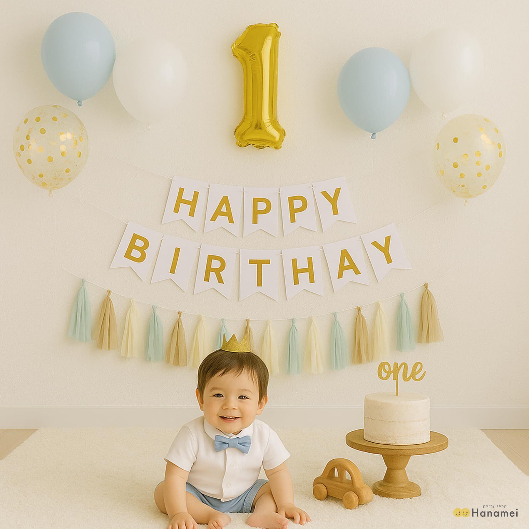 Hanamei 誕生日 飾り付け 装飾 バースデー デコレーション セット no.2 ファーストバースデー1歳 男の子 女の子 pa015 (1歳, ブルー)