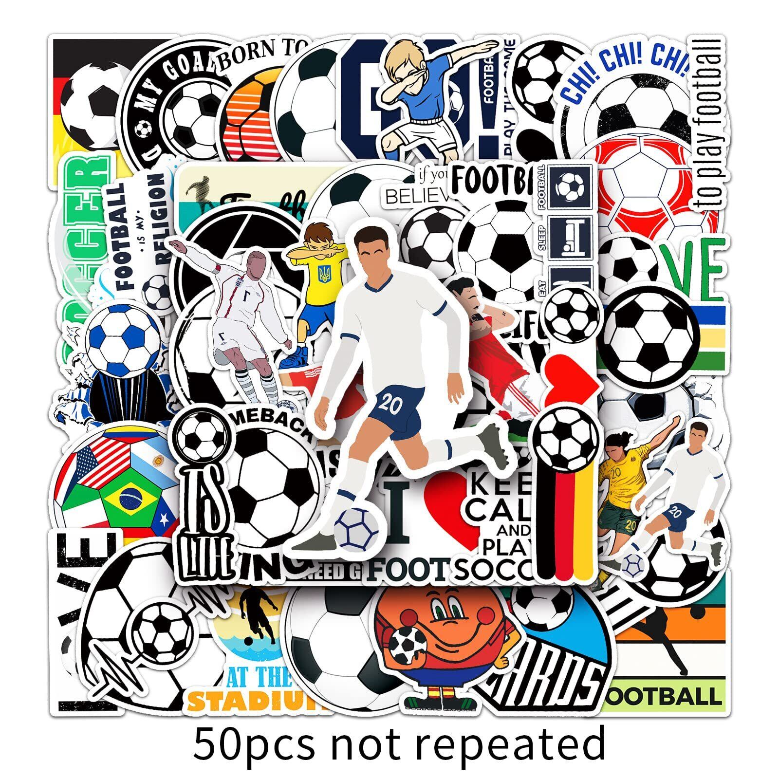 スポーツステッカーセット 50枚 防水 スポーツシールパック ステッカースーツケース 車 バイク ヘルメット スケボー ギターなどに適用 (サッカー)