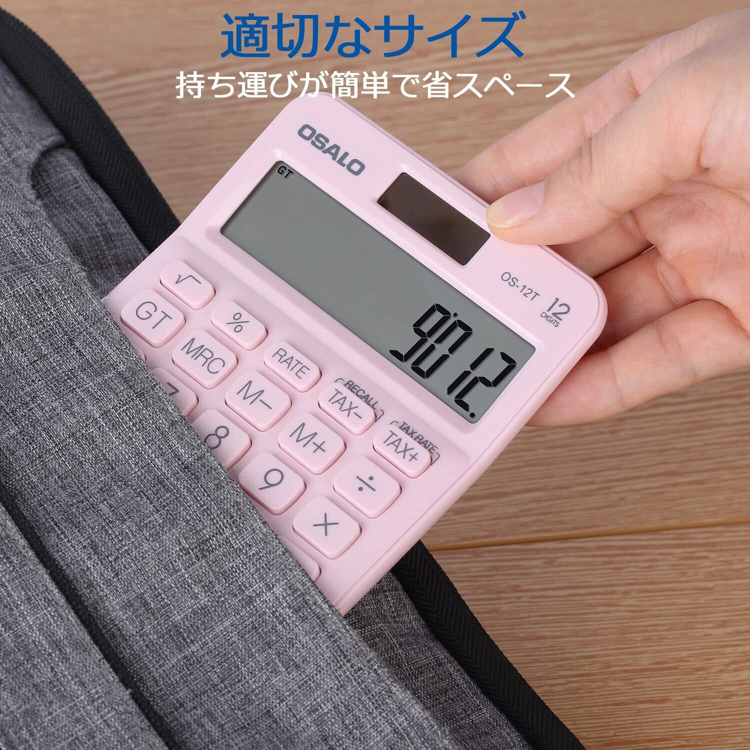 卓上電卓 大型LCDディスプレイ 12桁 数字ビッグボタン 税金会計計算機 電池式 太陽光発電 デスク オフィス 自宅 ビジネス用 (OS-12T ピンク)