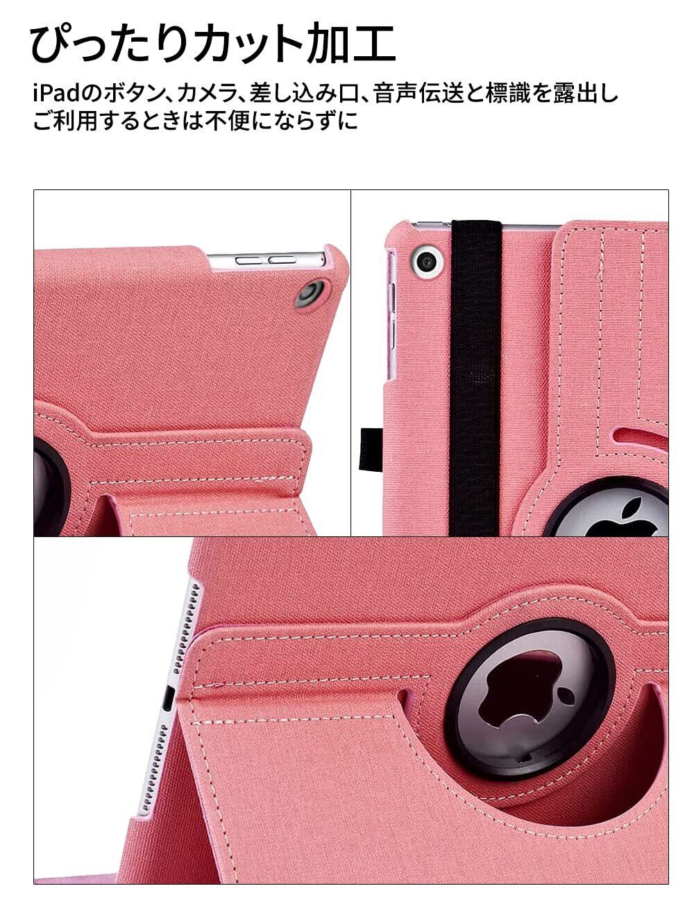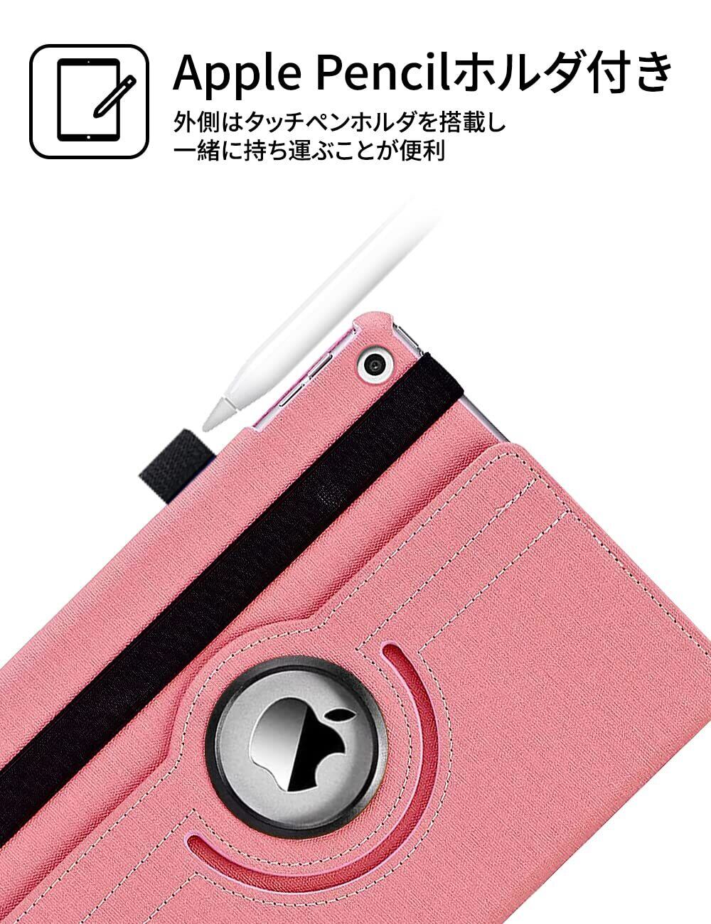 iPad 9世代 ケース 10.2インチ iPad 第9/8/7世代 ケース (2021/2020/2019モデル) 360度回転 耐衝撃カバー オートスリップ機能搭載 3段階調節可能 ホルダベルト付き Apple pencil収納可能 デニム (ピンク)