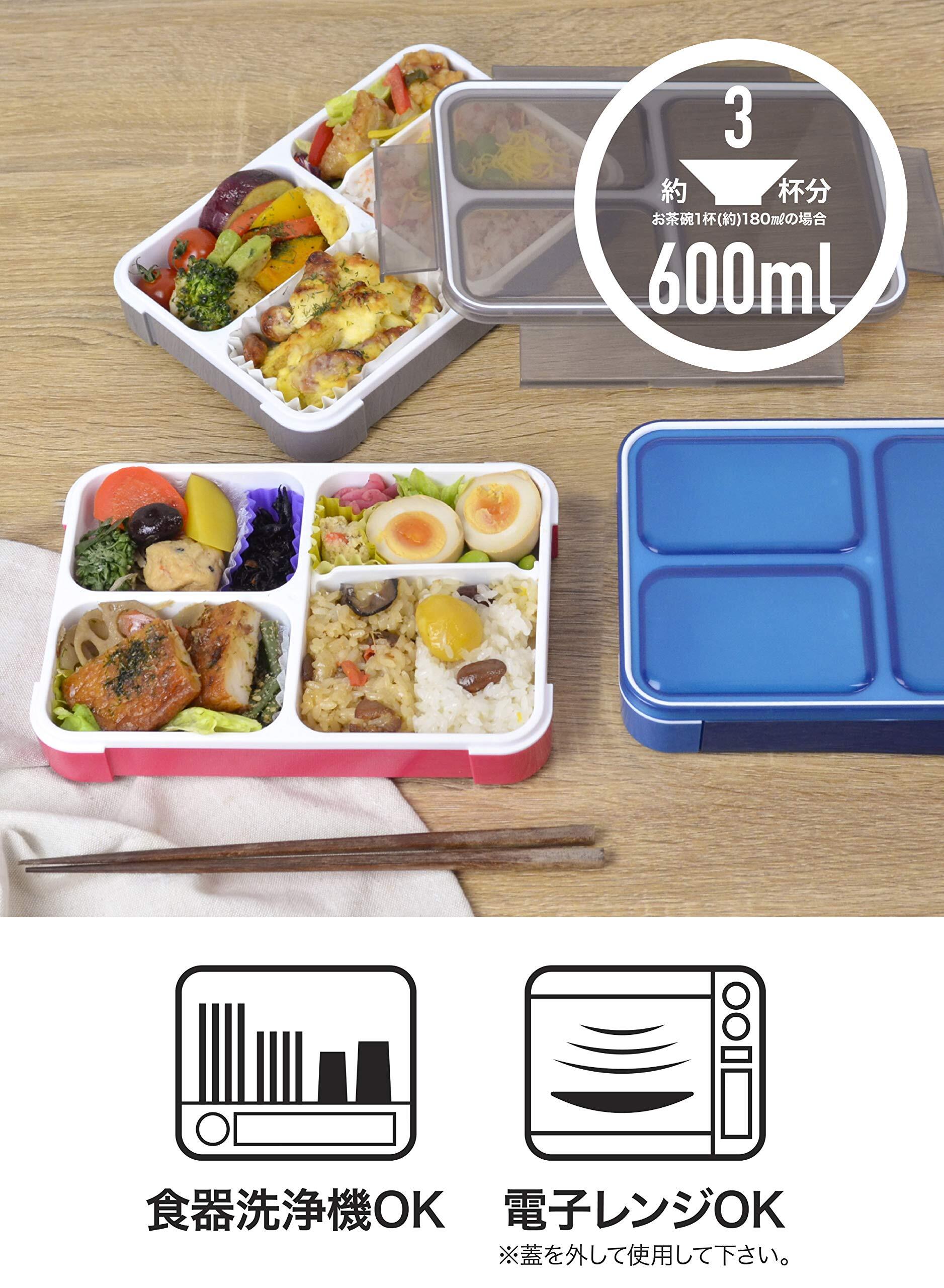 【汁漏れしにくい】一体型のパッキンと4点ロックで汁漏れを防止します! 本体の周囲と中仕切りをシーリングするWシーリング構造で、汁漏れを防止します。各スペースの汁移りも防ぐので、おかずなどの味移りも防止します。※本商品は密閉容器ではありませんので、水分の多い物や汁物は入れないでください。漏れの原因になります。