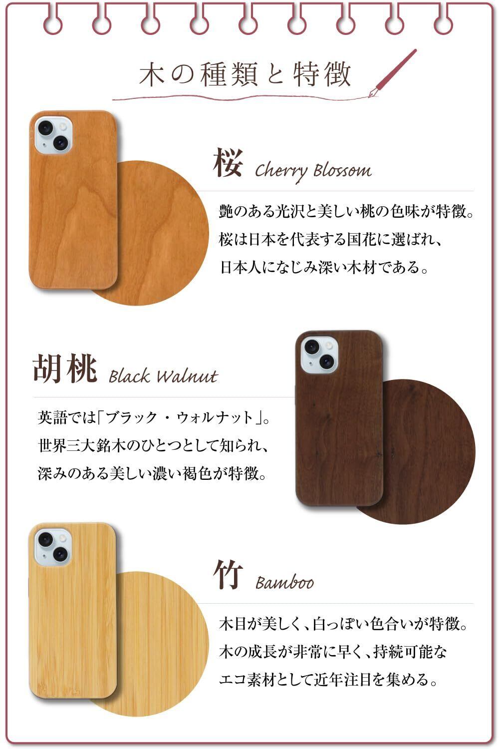【洗練されたデザイン】桜の天然木を使用した上質な木製ケース。一つひとつの木目や色合いが異なる世界に一つだけのスマートフォンケースです。