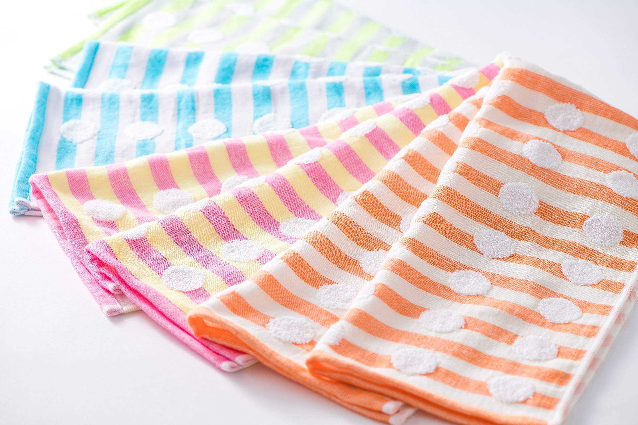 【Kainoo フェイスタオル ドットボーダーガーゼ】◼︎1枚サイズ:34cm×82cm ◼︎素材:綿100% ◼︎生産地:日本 今治 ◼︎今治タオルブランド認定番号:第2017-1926号