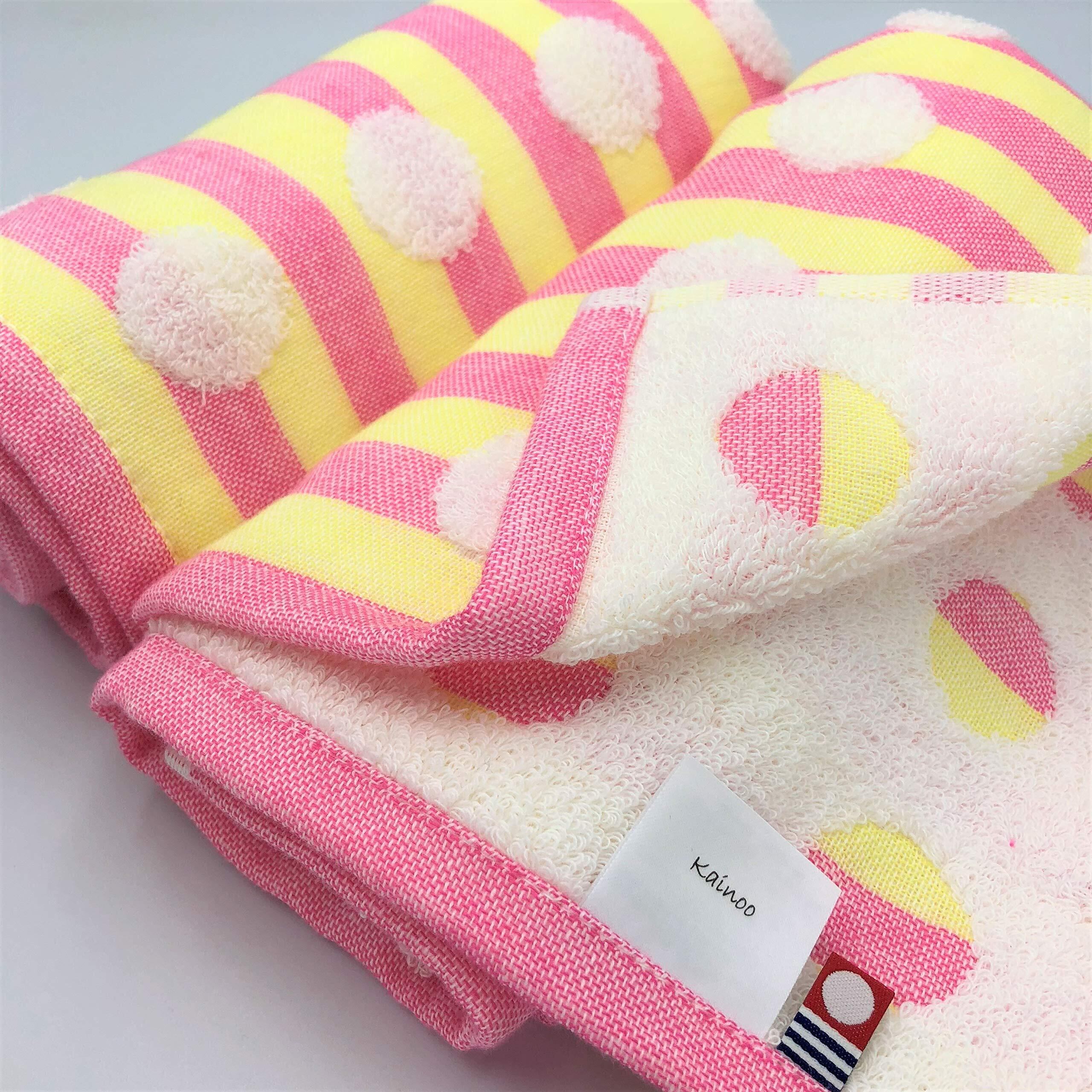 kainoo 今治タオル フェイスタオル 2枚セット ドットボーダーガーゼ 34cm×82cm (ピンク) 今治 ガーゼタオル 優しい肌触り 幼稚園 保育園 通気性 キャンプ