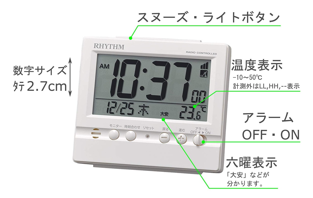 「見やすさ」と「使いやすさ」を第一に考えた電波目覚まし時計です。