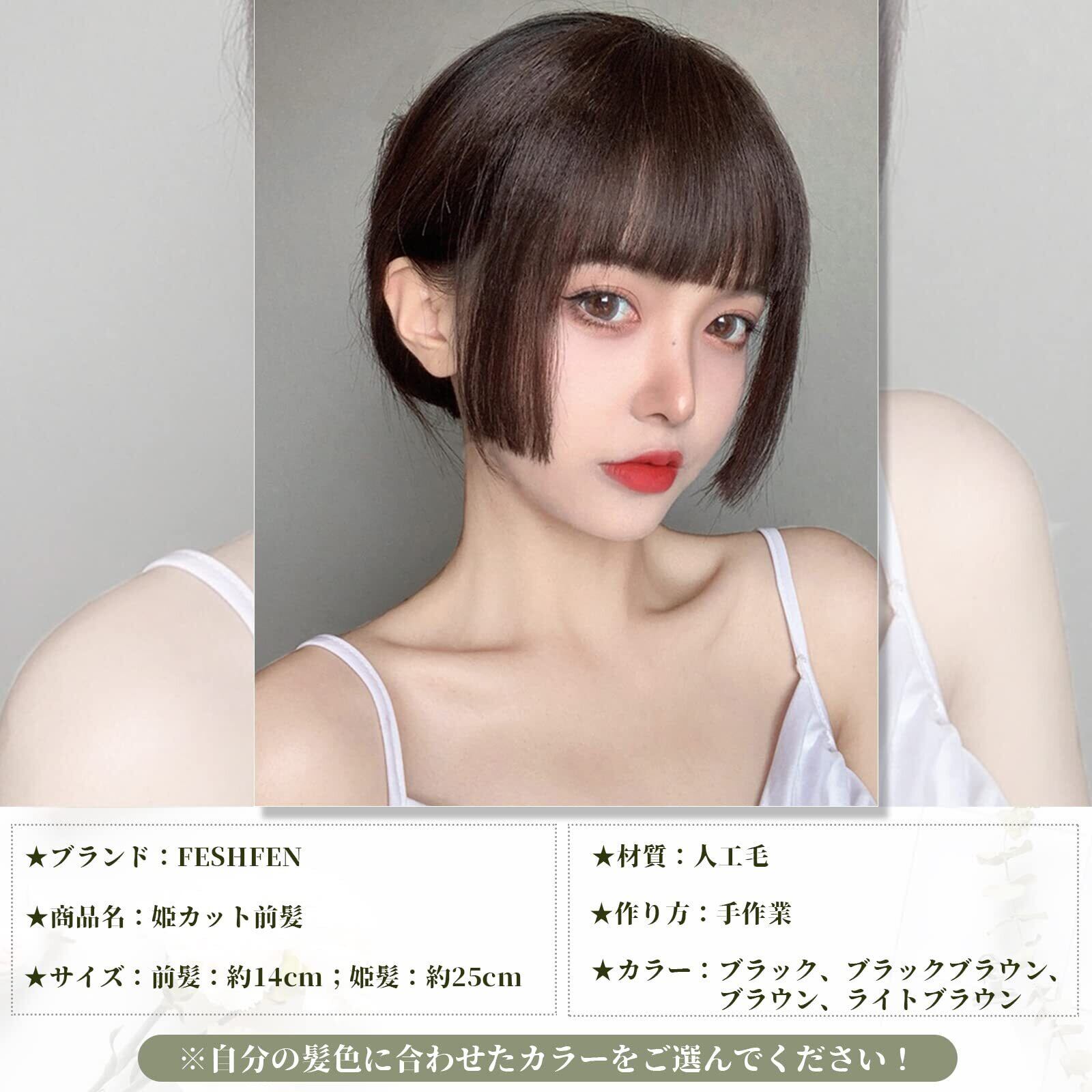FESHFEN 前髪ウィッグ 姫カット 部分ウィッグ コスプレ用 総手植え レディース エクステ ポイントウィッグ 姫髪 ふんわり 姫カット前髪 前髪ウィッグ姫髪 もみあげ付きウィッグ 厚め 小顔 ワンタッチ 仮装 日常 超自然 耐熱 原宿系 ロリータ ブラウン(姫カット)