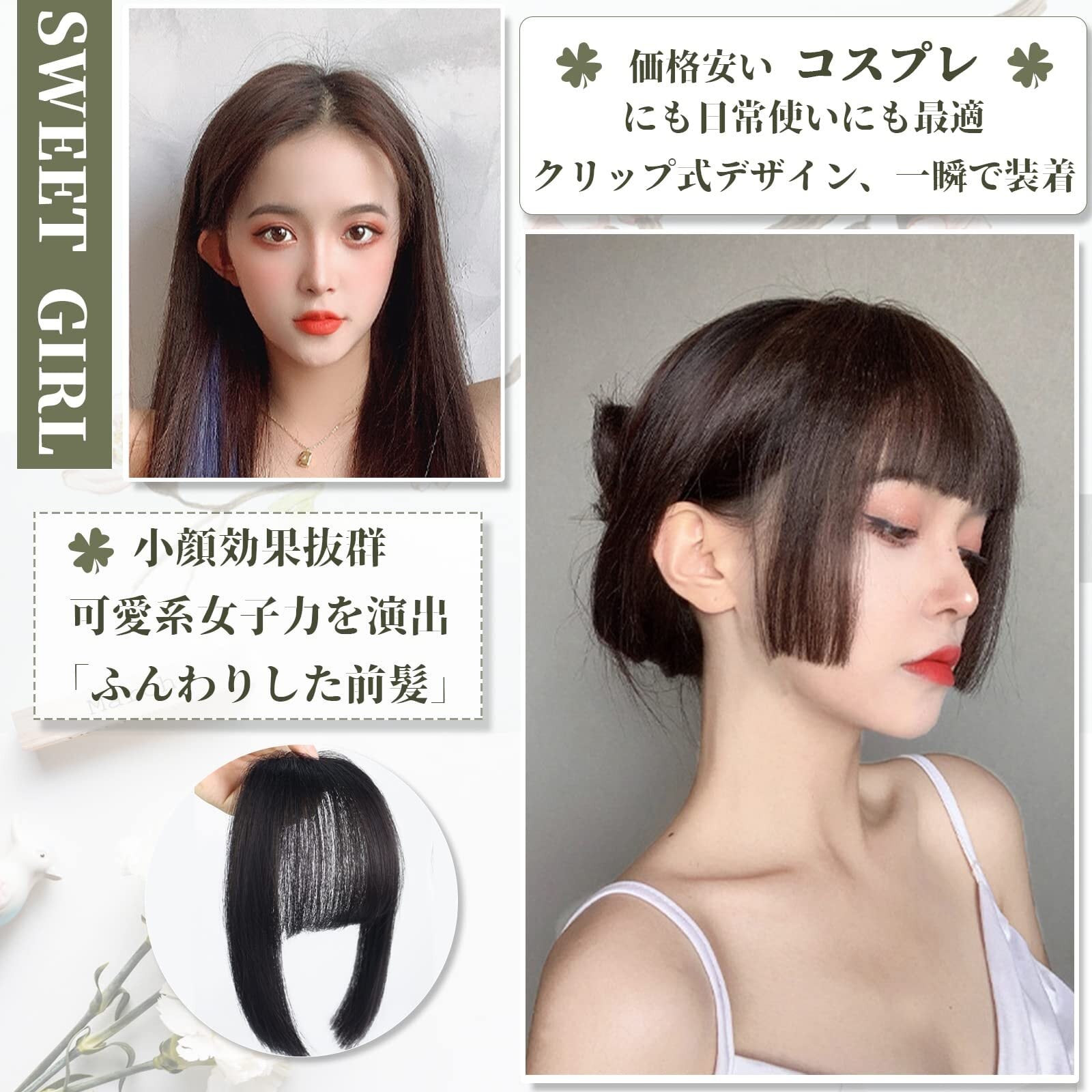 【オススメ】お手頃で、短期間前髪が欲しい方にピッタリです。コスプレ、変装パーティー、仮装、ハロウィン等のパーティーやイベントでも大活躍。お出かけ、夜のデート、通勤、通学、旅行などデイリーにも活躍します。