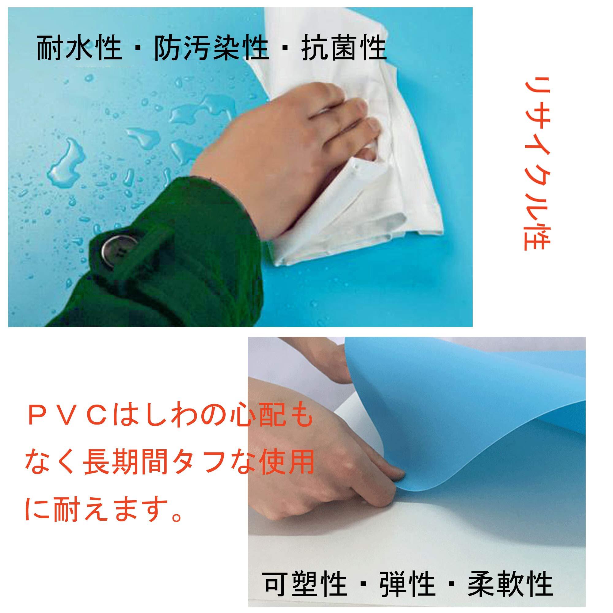 PVCという素材の特性上 折れ目がつきにくく、しわに煩わされる心配がありません。防水仕様のため汚れは水拭きで容易に落とすことが出来ます。