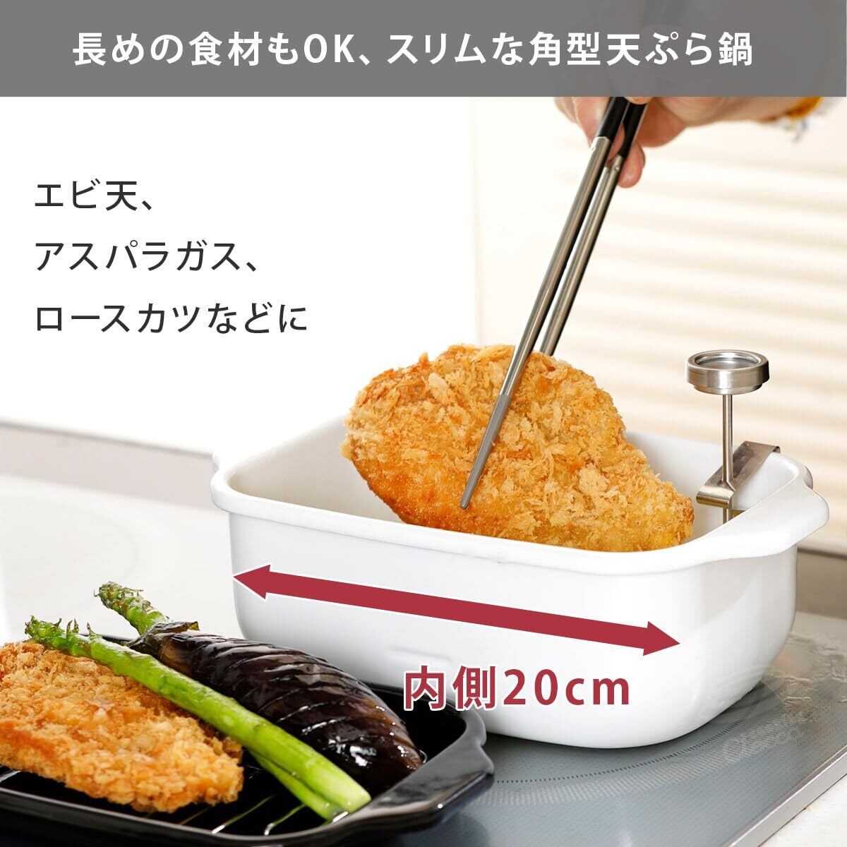 富士ホーロー 角型天ぷら鍋 ガス火 IH対応 温度計 揚げ網 バット付き 20cm バニラ TP-20K.VA