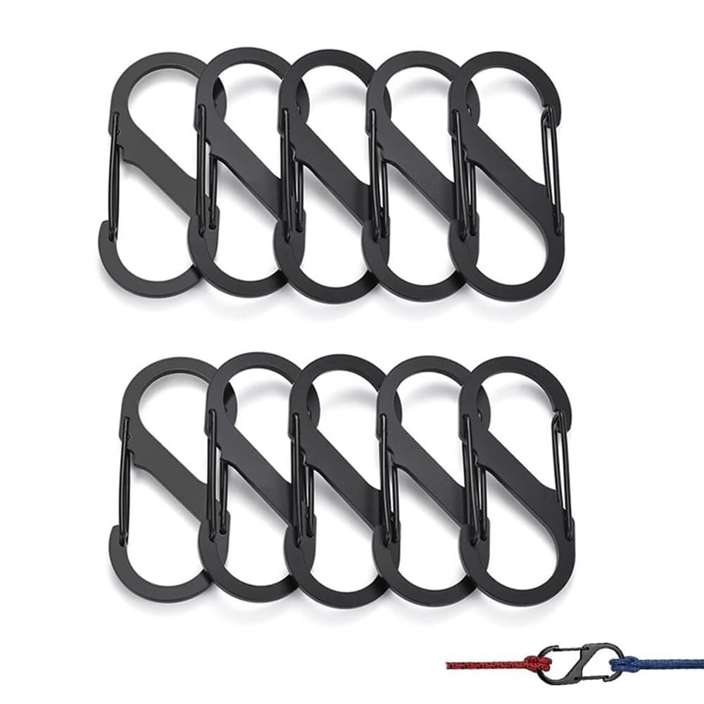 MOCOXYKLXY カラビナ S字型 超軽量 耐久性 キーホルダー 多機能 携帯便利 生活雑貨 盗難防止 紛失防止 亜鉛合金 アウトドア用品 登山 キャンプ用品 10個セットブラック(60mmx21mm)