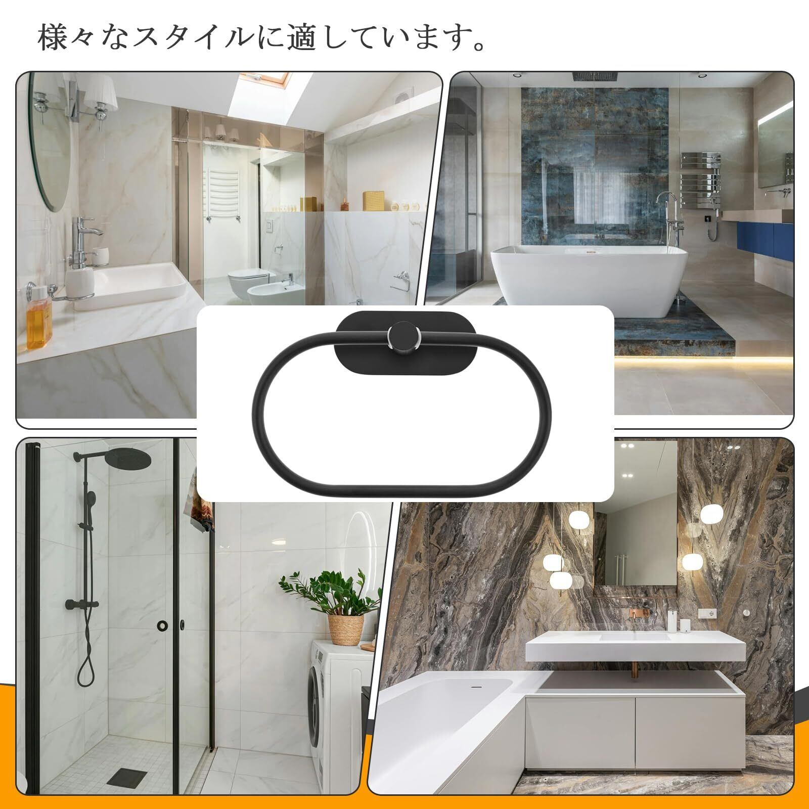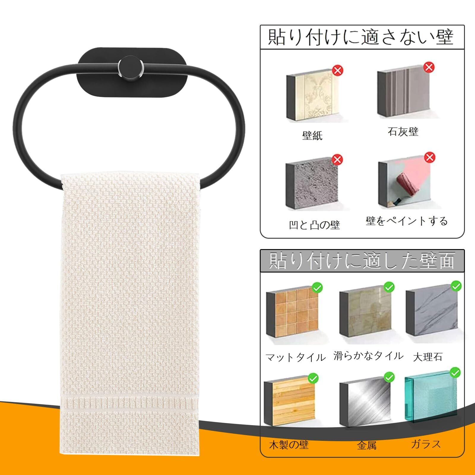 Bowarepro タオルリング タオル掛け タオルハンガー ステンレス粘着性高い 壁付け 浴室 バスルーム 洗面所 キッチン トイレ用 ブラック